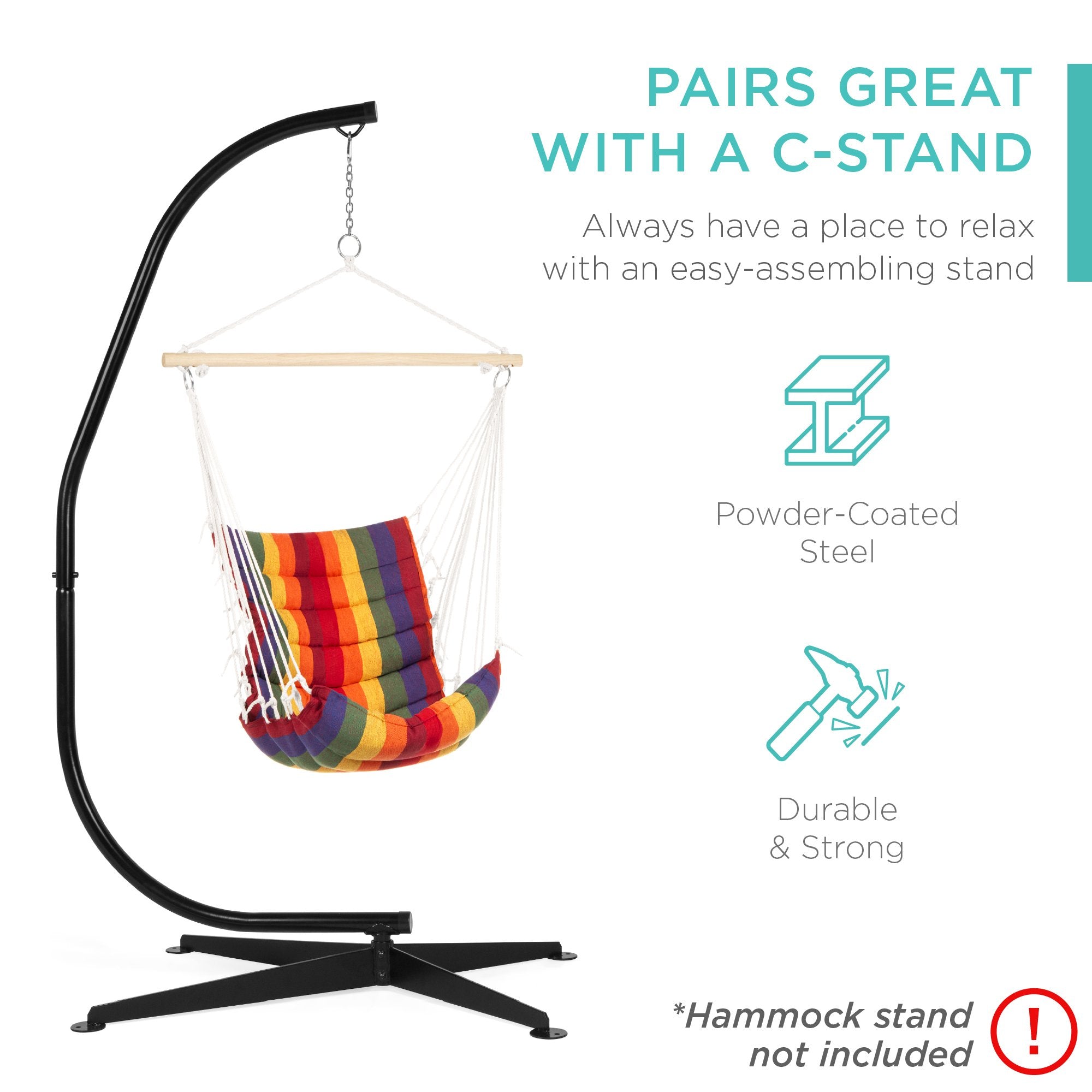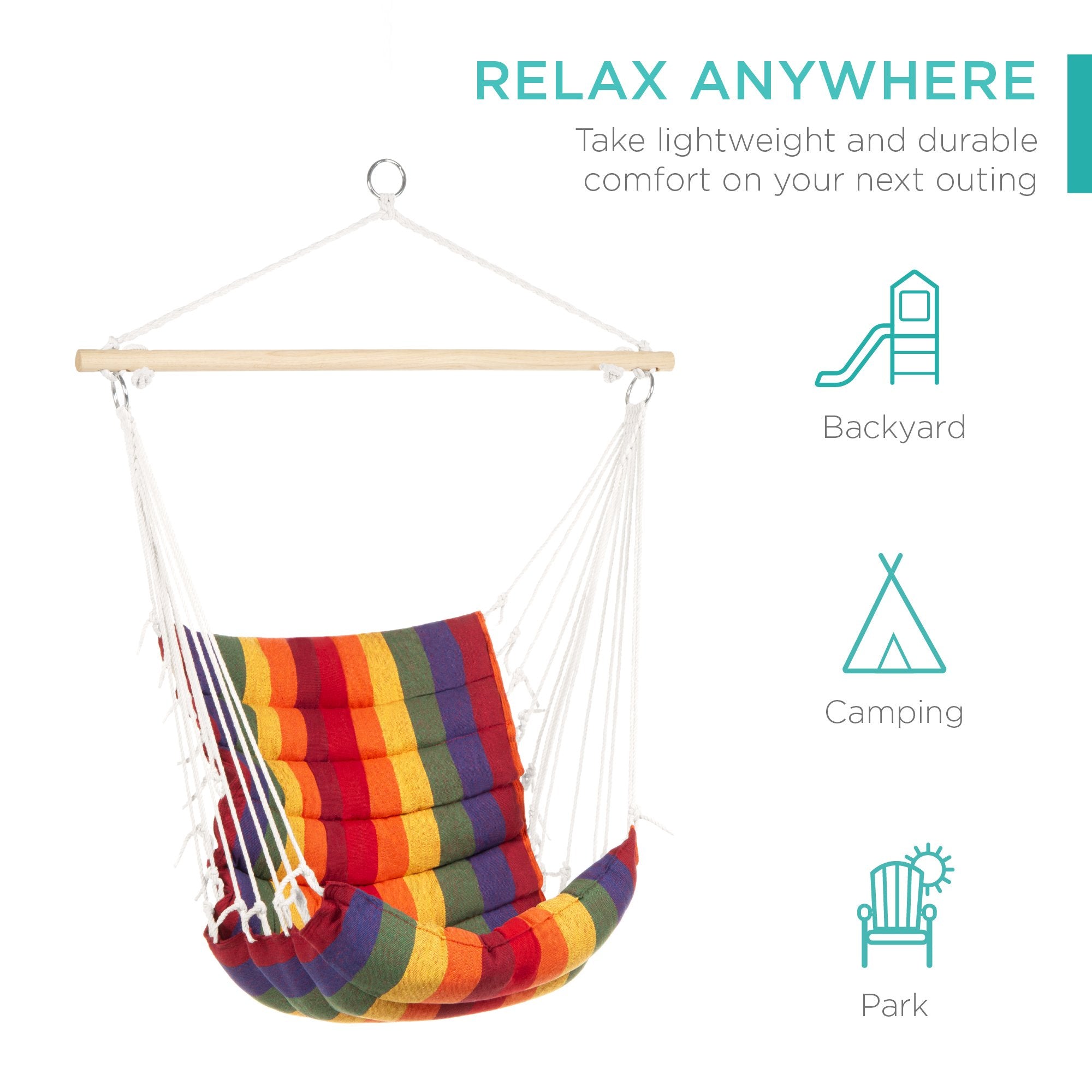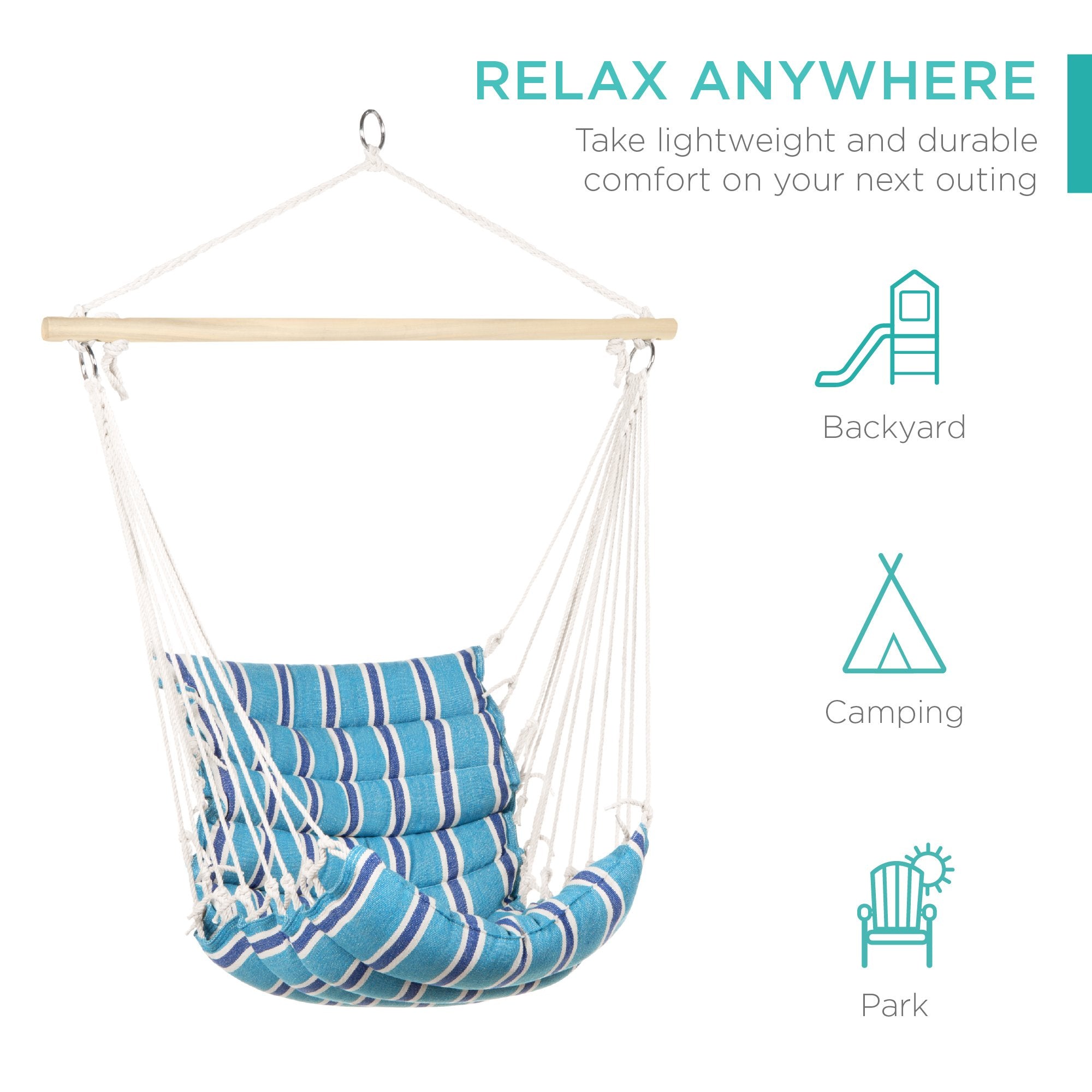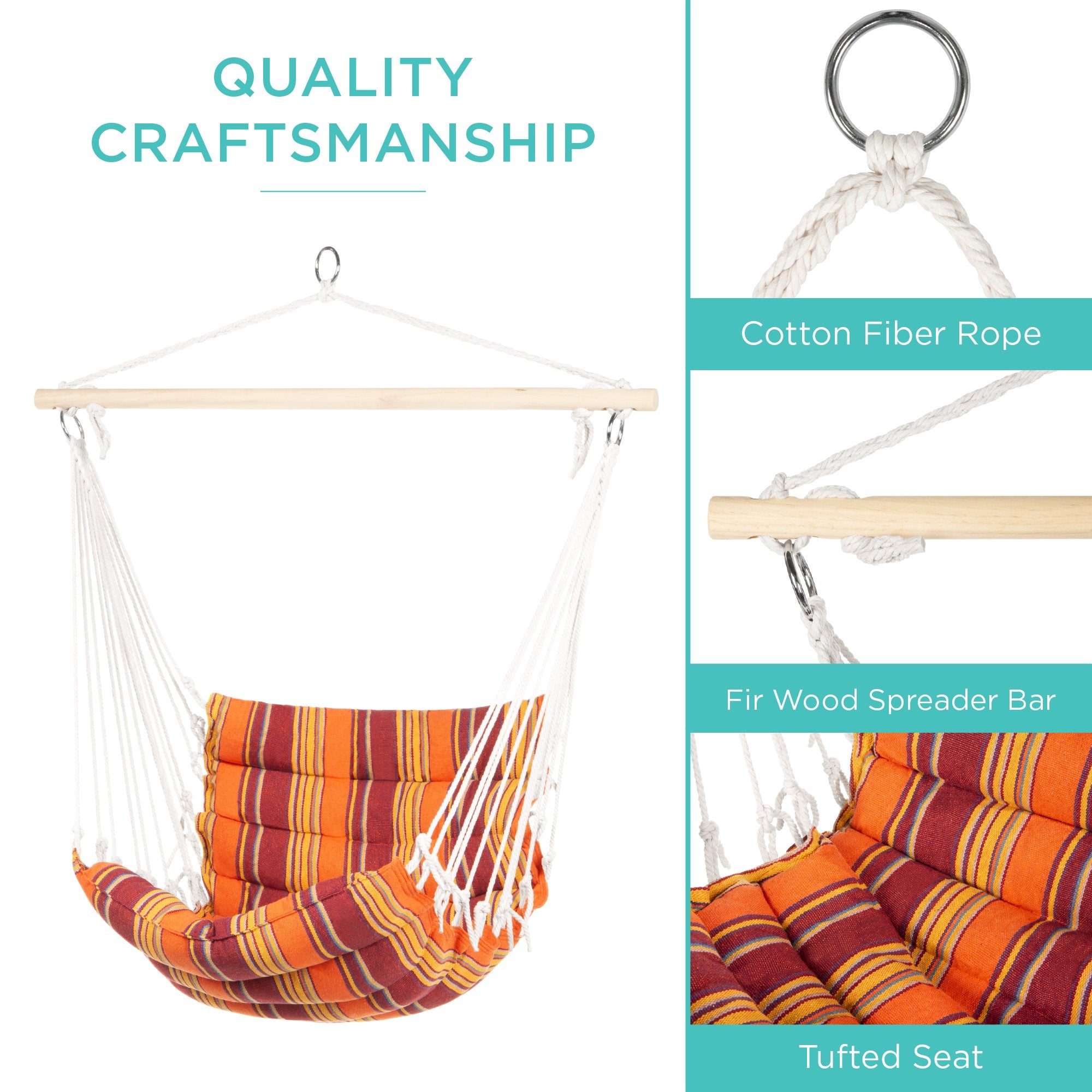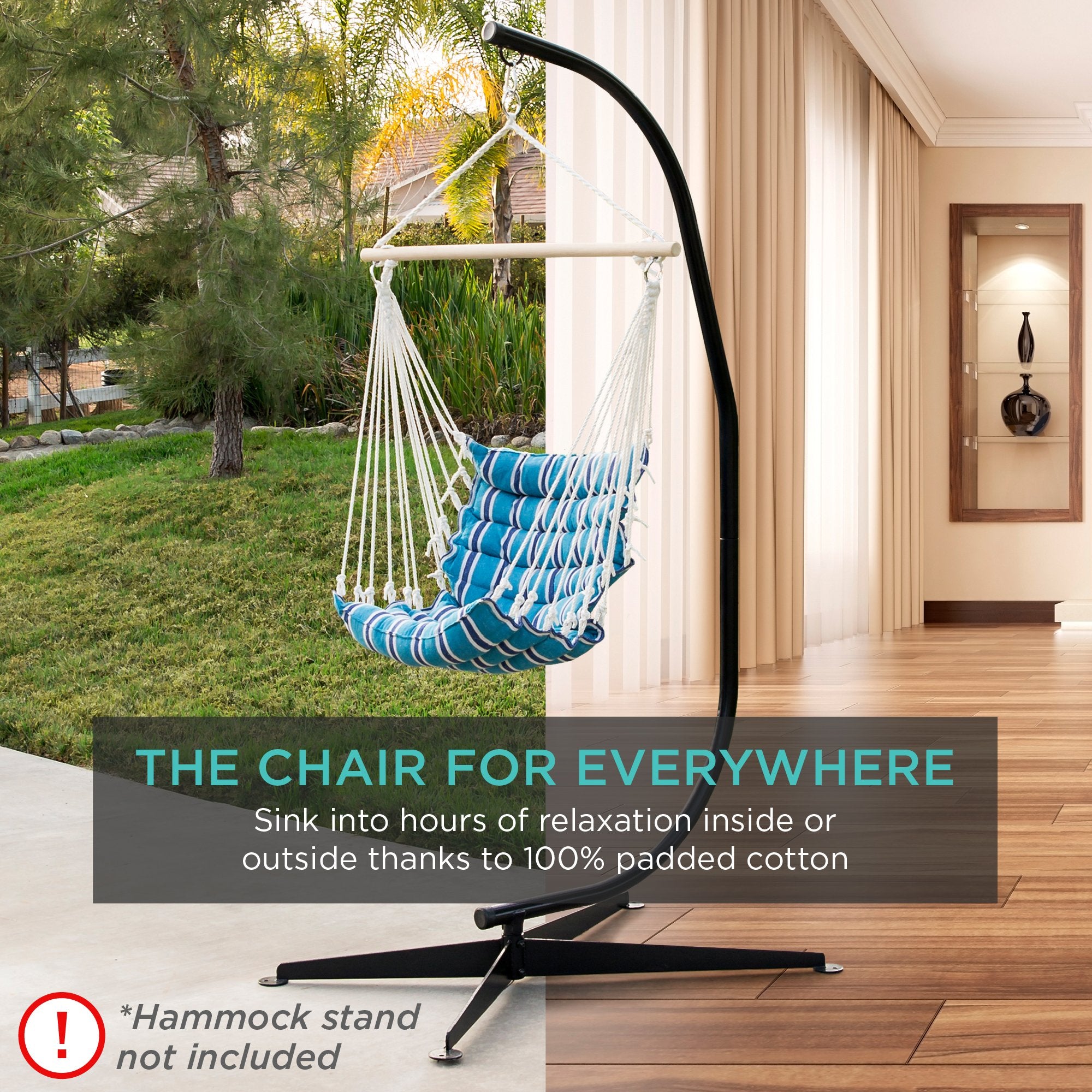 SUSPENDED SEATING: Ideal for hanging on tree branches, C-style hammock stands, and a variety of other sturdy frames