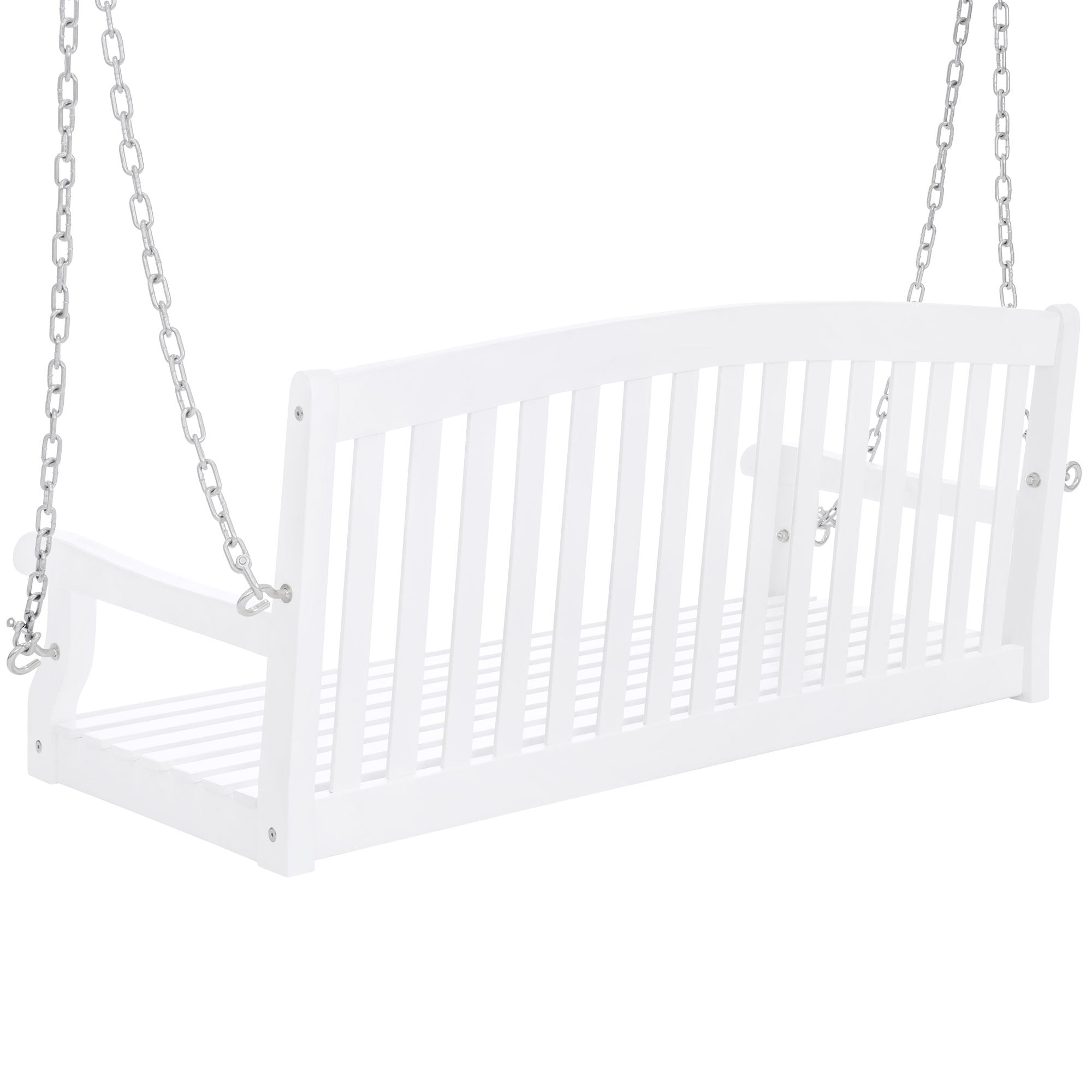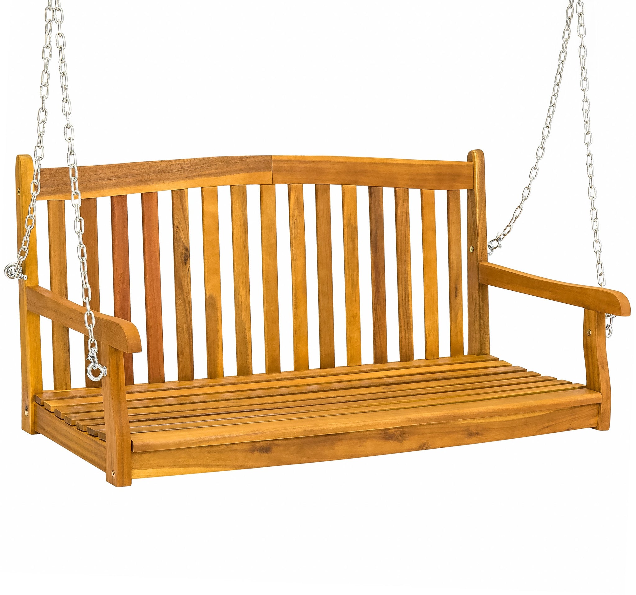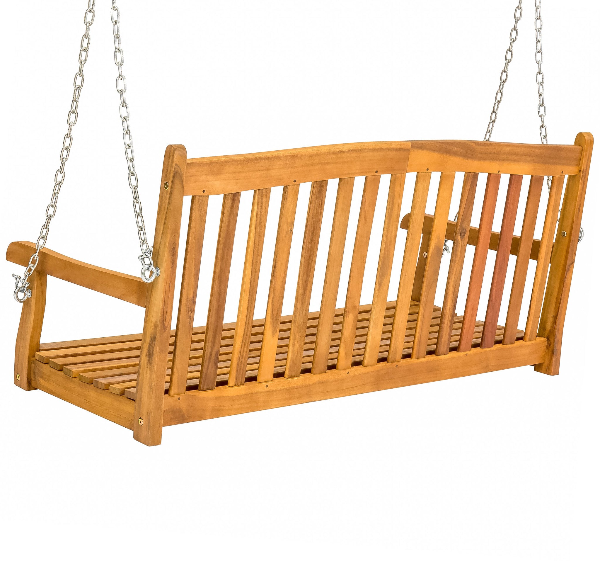 • DECORATIVE HANGING BENCH: This beautiful outdoor wooden bench hangs from a pair of 4-foot metal chains, letting you swing and sway as you lounge