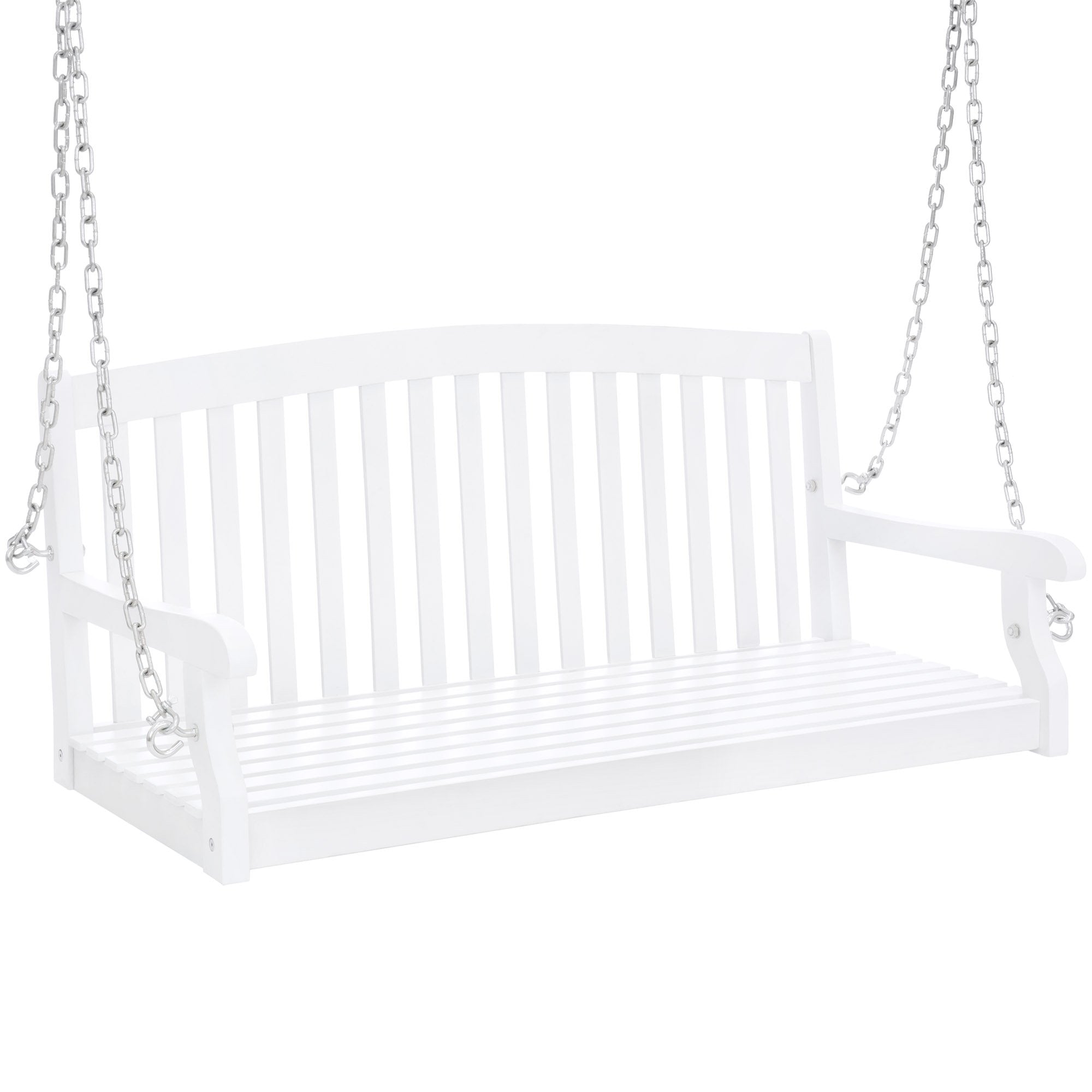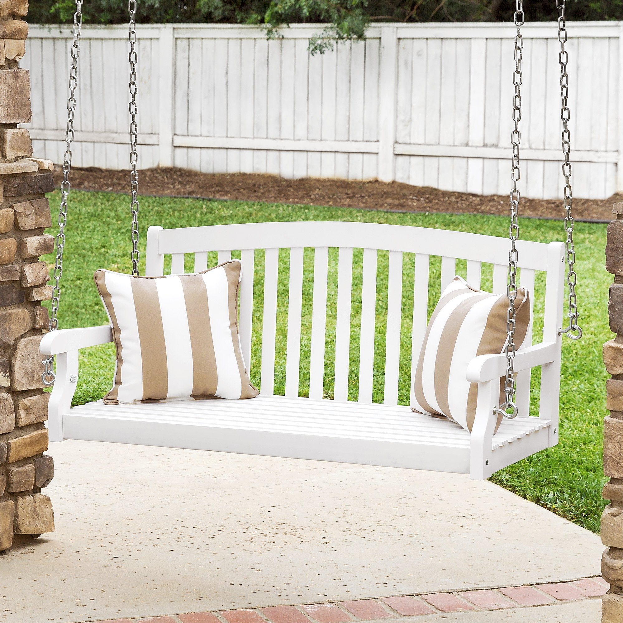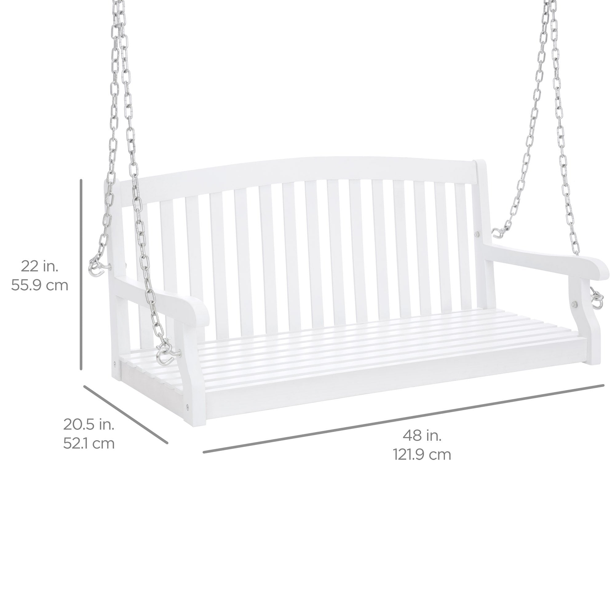 • DECORATIVE HANGING BENCH: This beautiful outdoor wooden bench hangs from a pair of 4-foot metal chains, letting you swing and sway as you lounge