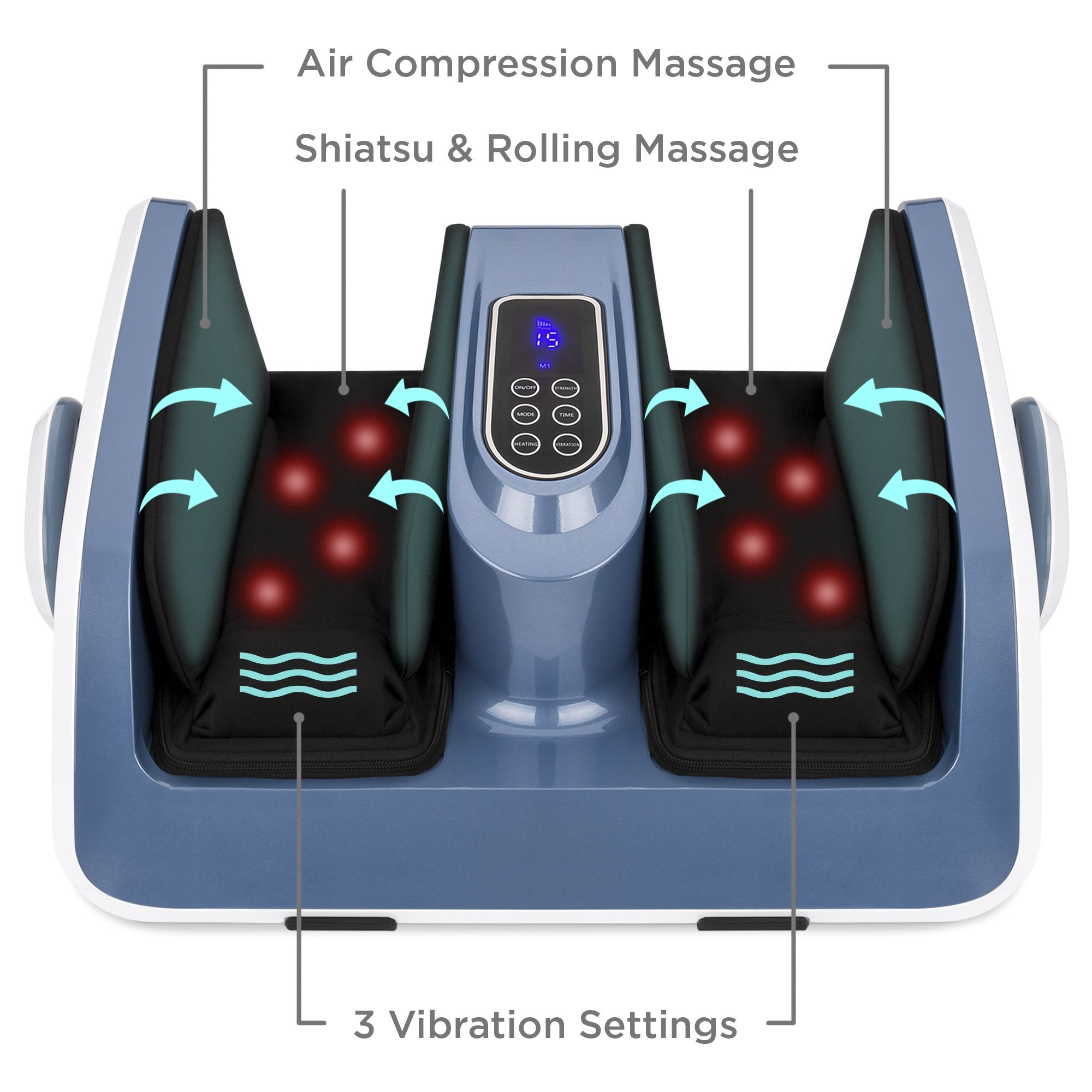 Air Compression Shiatsu Calf & Foot Therapeutic Massager w/ Heat, Rollers