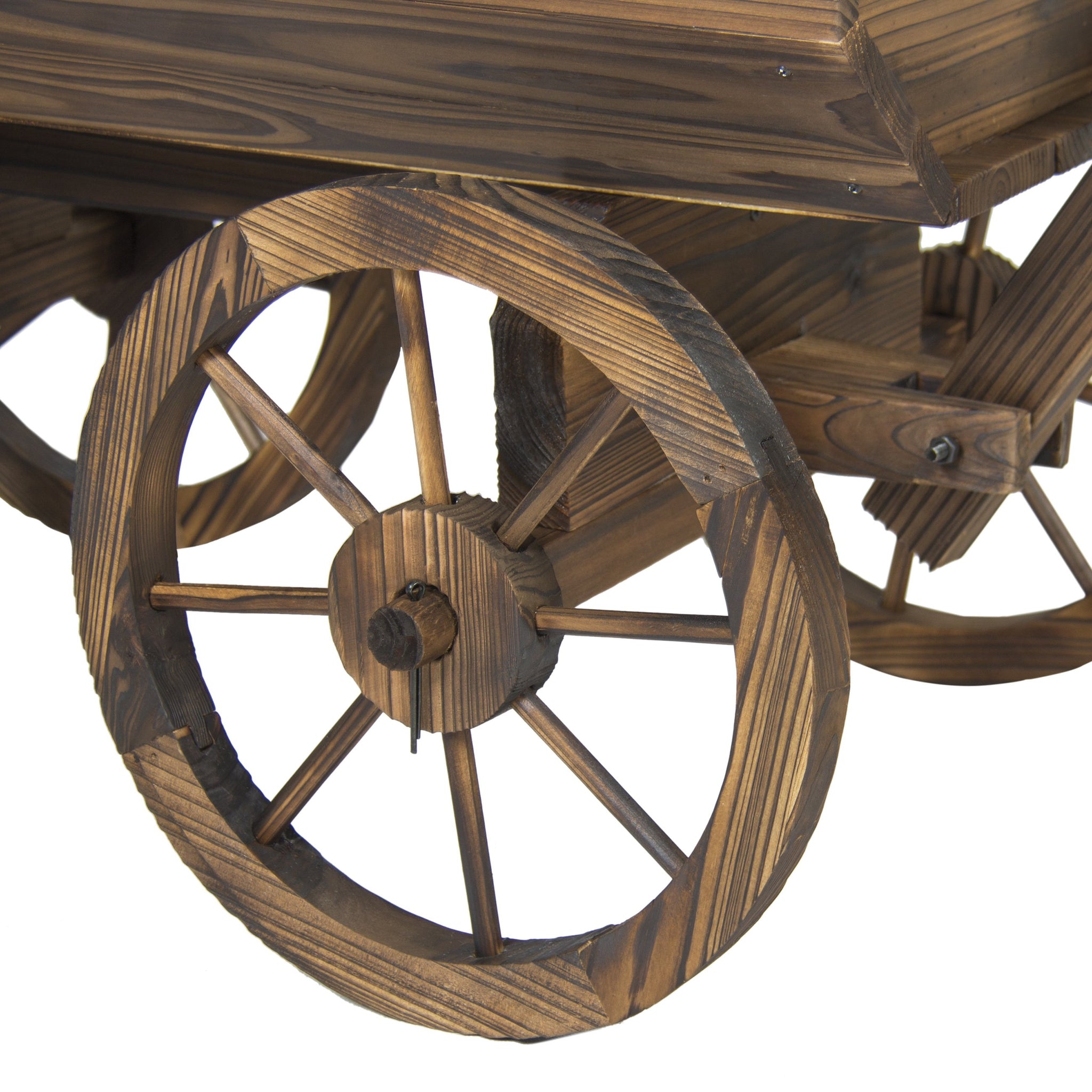 Wooden Garden Flower Planter Wagon w/ Wheels - Brown