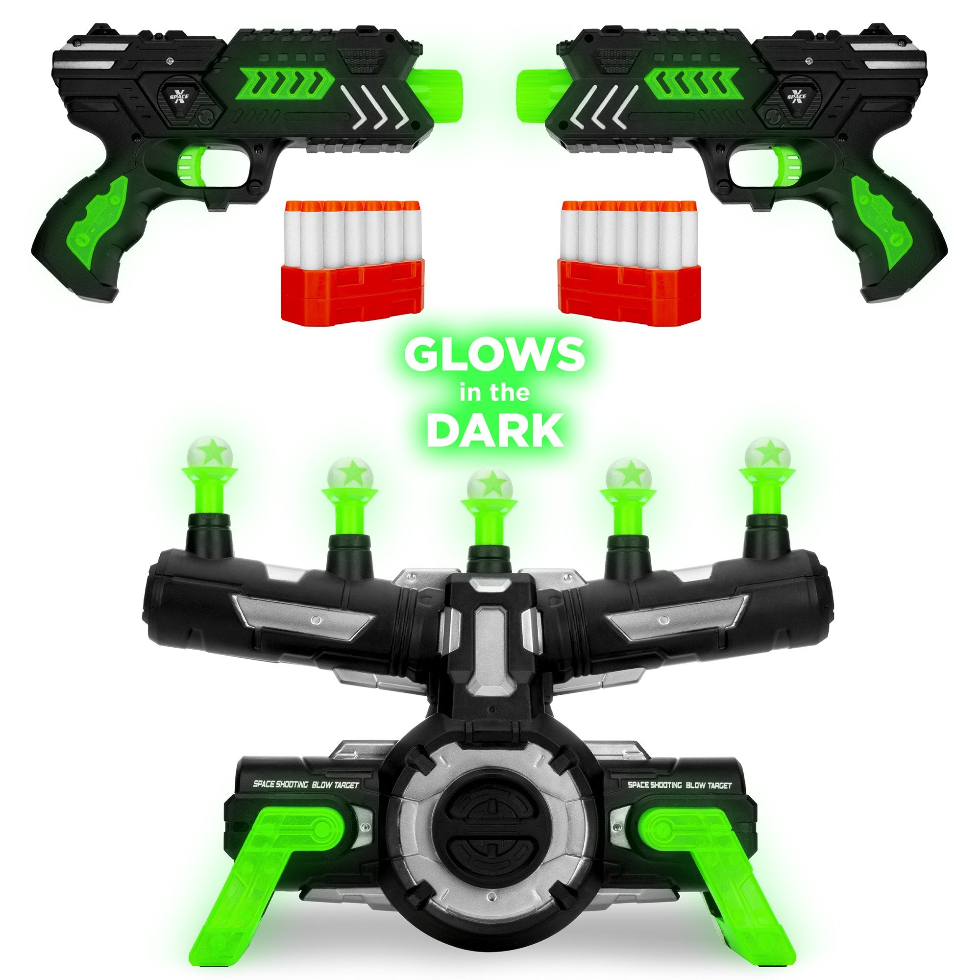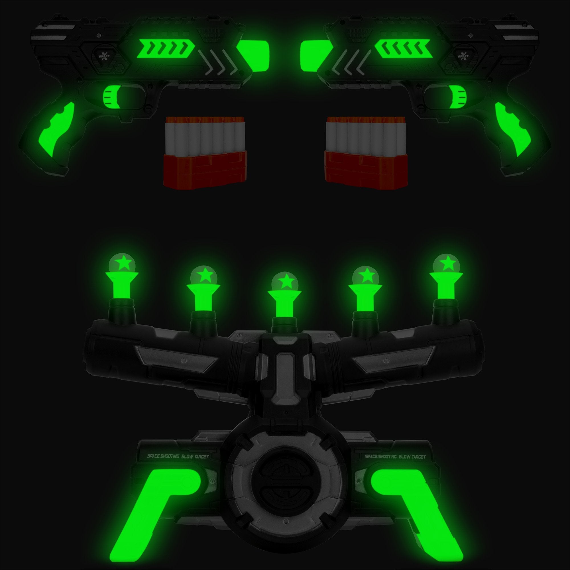 Glow-in-the-Dark Foam Dart Blasters & Target Set w/ 24 Darts, 2 Blasters