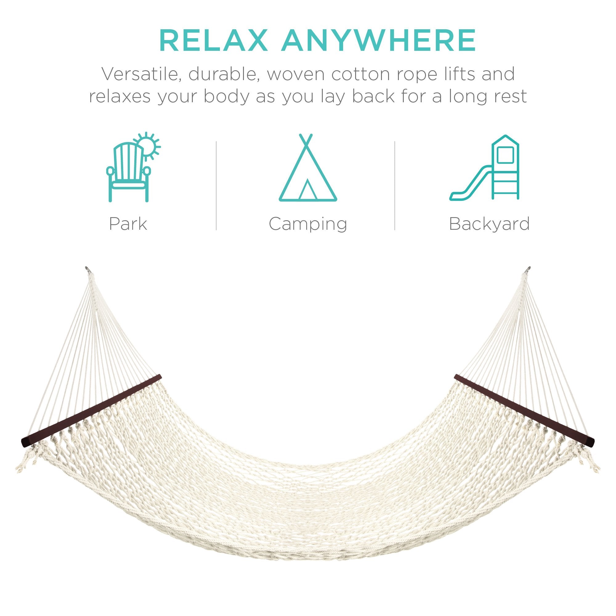Cotton Rope 2-Person Double Hammock w/ Spreader Bars, Carrying Case