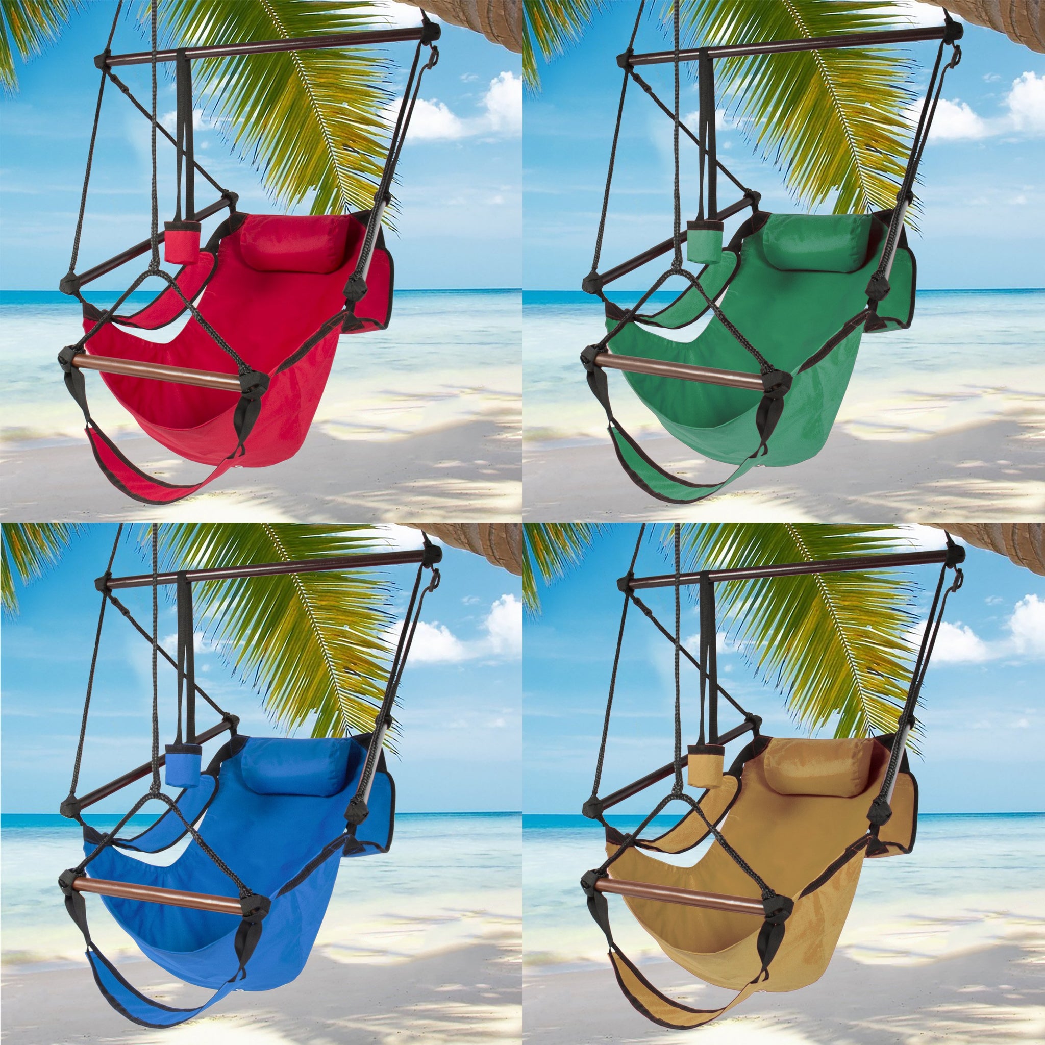 Best Choice Products is proud to present our brand new swinging hammock chair. This comfortable hammock is built to last for years. Relax outside and enjoy the fresh air with our hammock chairs. It gives you comfort with its high back to give hammock-like support while you sit upright. It’s made of durable weather resistant 600D nylon, perfect for indoor or outdoor use. Durable long lasting weather resistant construction Double layer 600D nylon 1" layer of nylon webbing around all edges 12 Carrier round hollow braid UV protected polypropylene rope Kiln dried, hardwood oak, sanded and stained dowels w/ UV protection Hold up to 250 lbs