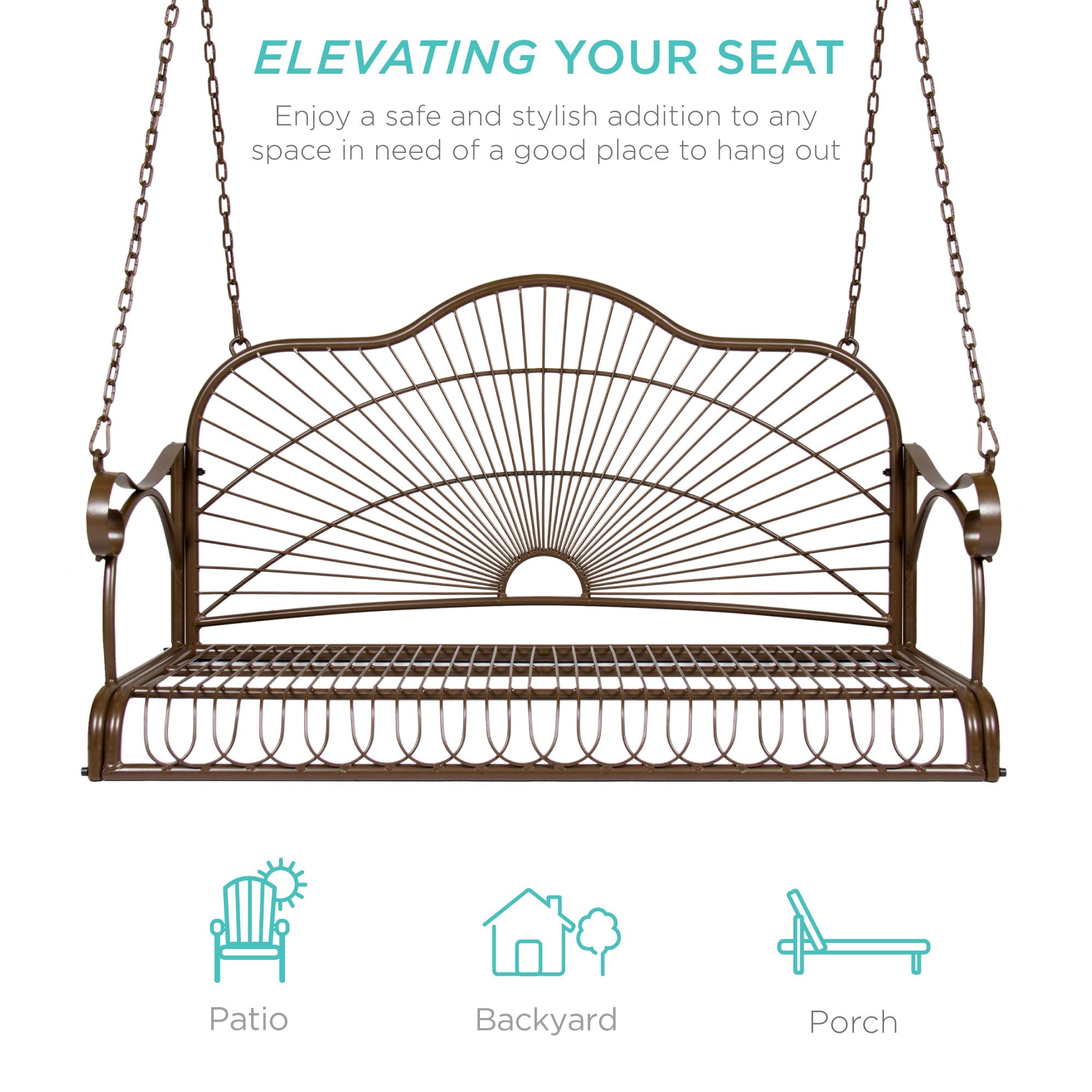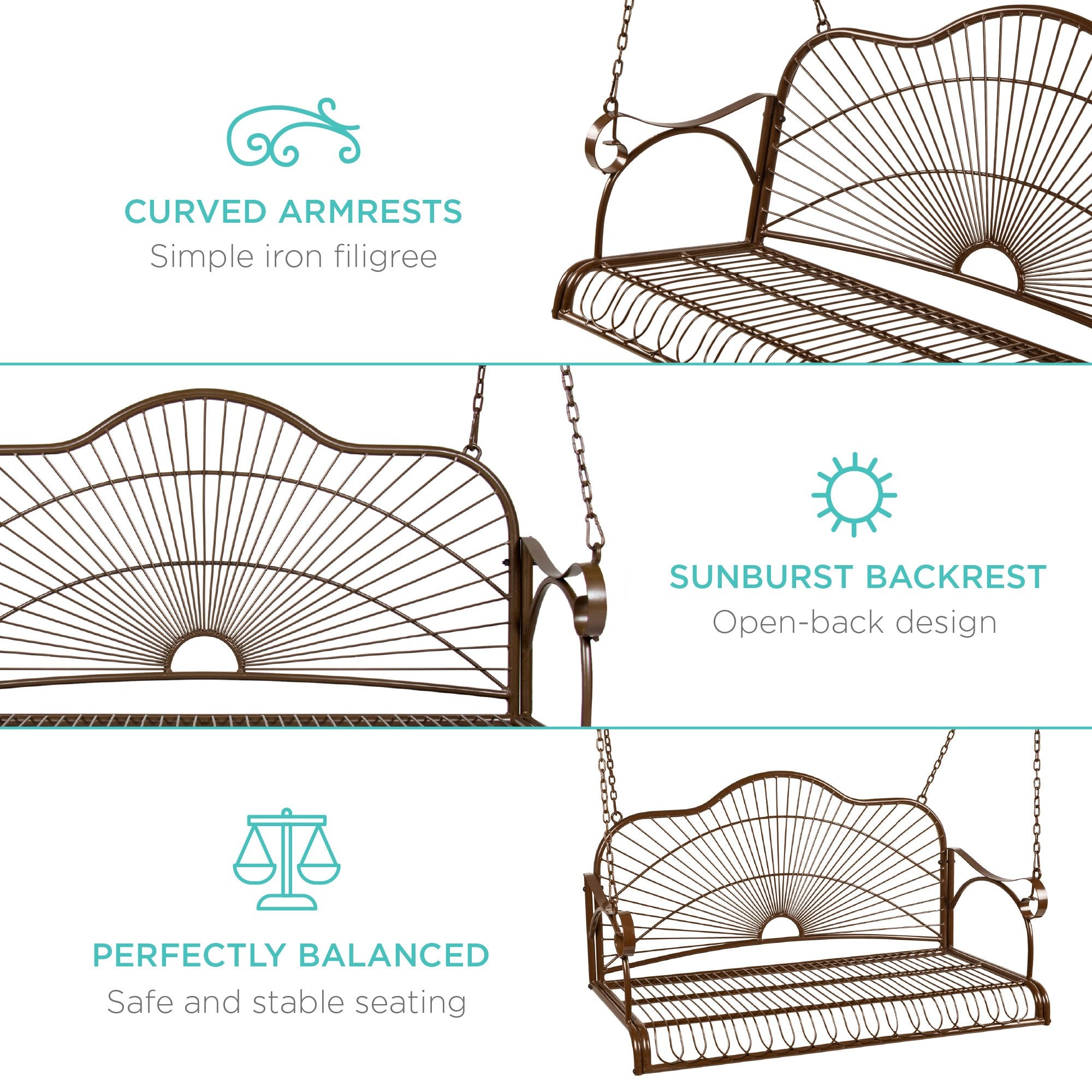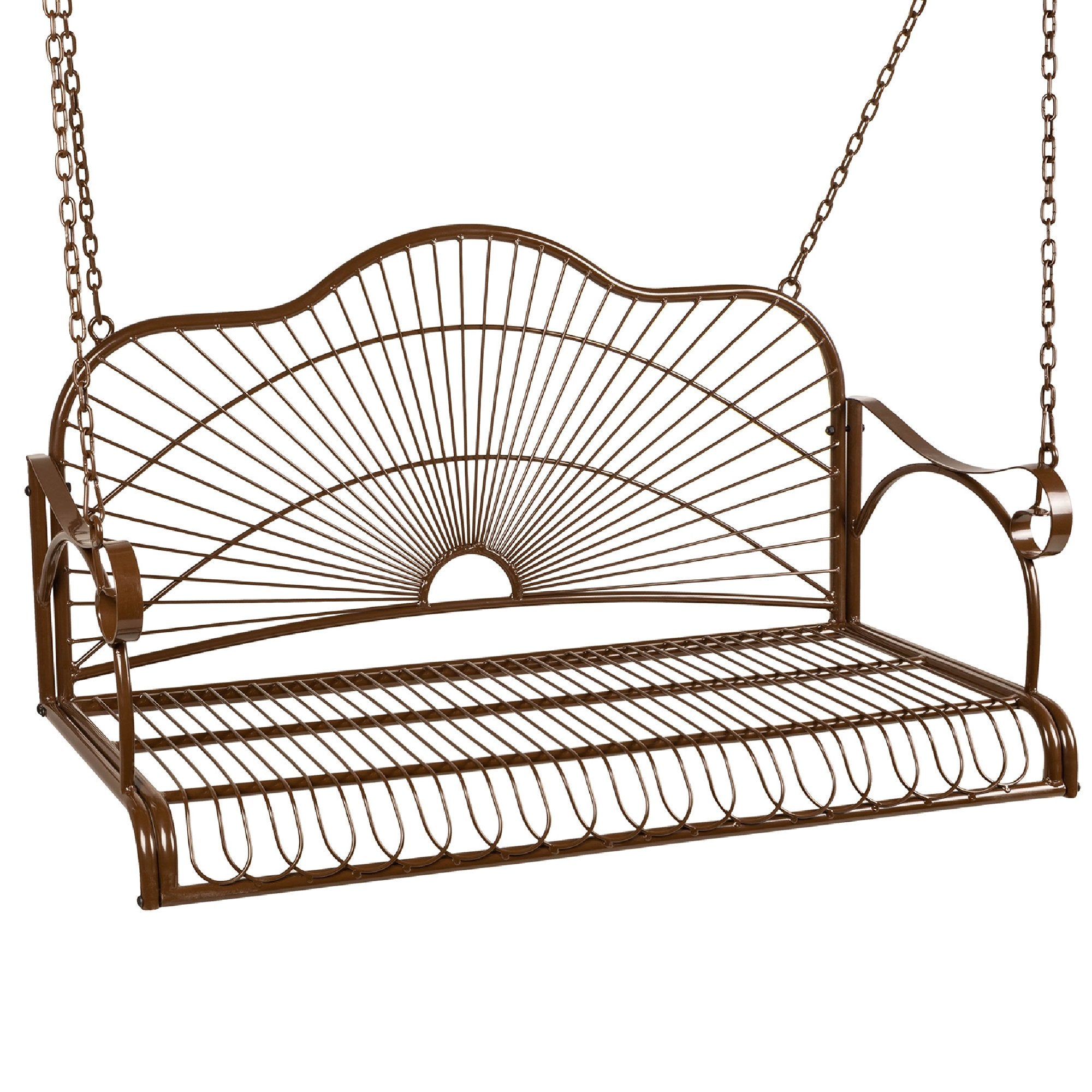 Hanging Iron Porch Swing Patio Furniture w/ Armrests, Chains