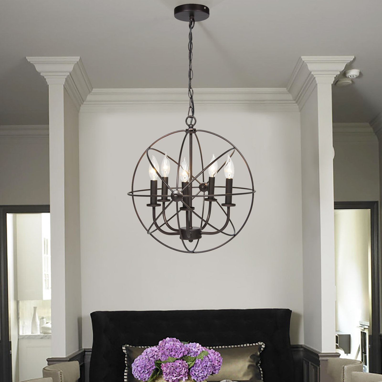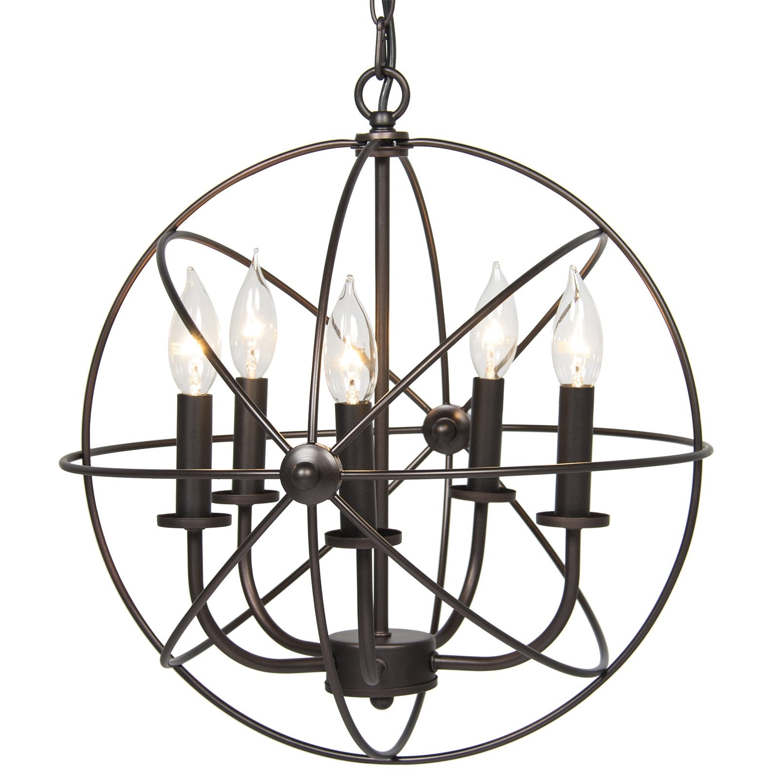Industrial Vintage Hanging 5-Light Ceiling Chandelier Fixture - Bronze