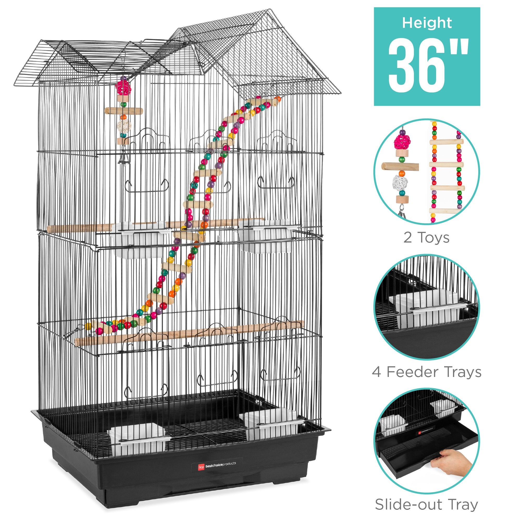 PERFECT FOR SMALL/MEDIUM BIRDS: Tightly spaced [0.4"] iron wires create a 36-inch tall enclosure so your parakeets, finches, or lovebirds can stretch their wings