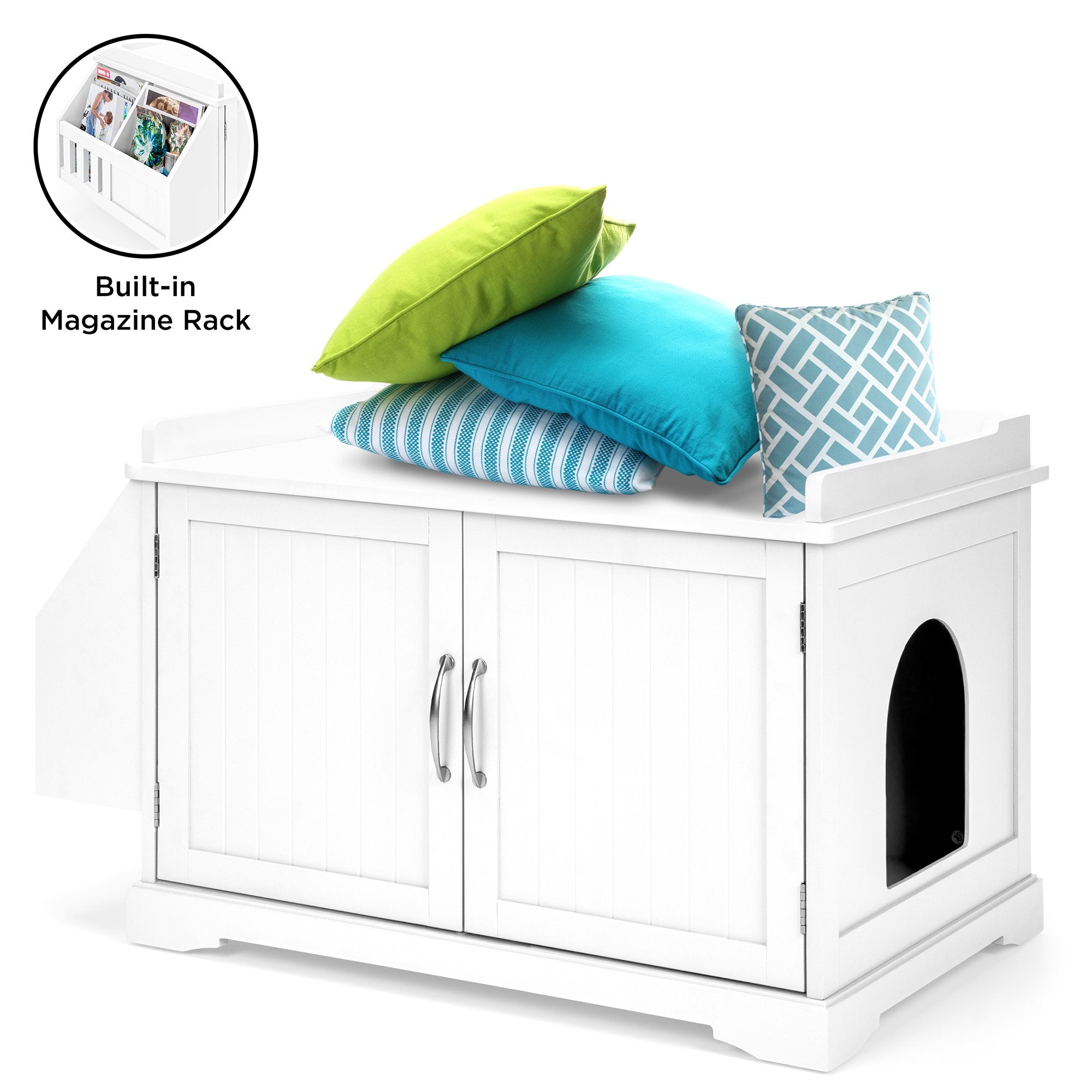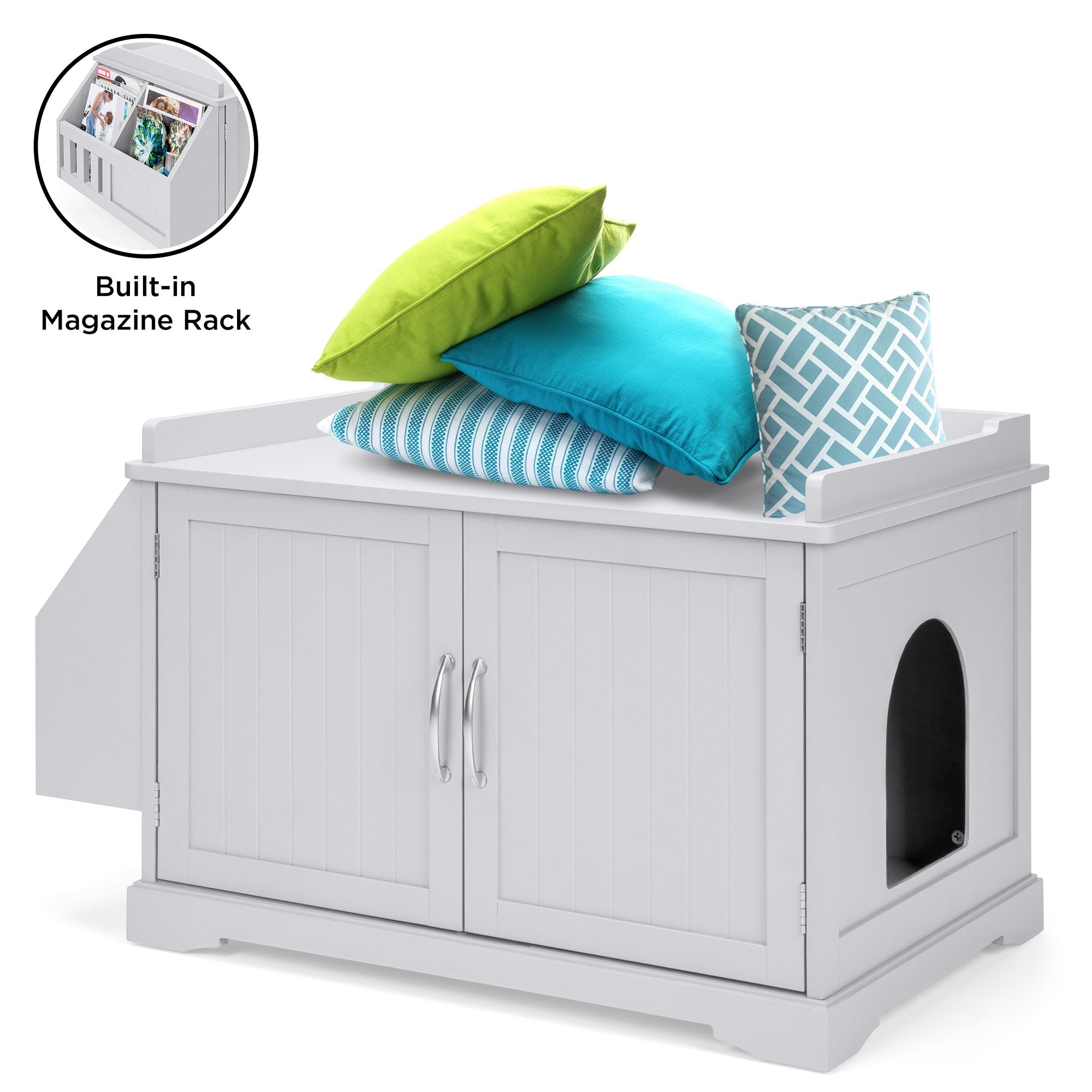• MULTIFUNCTIONAL FURNITURE: Always have a place to store your litter box! Use this litter box cabinet in in your living room, bathroom, and bedroom as a side table, storage bench, and book storage thanks to the built-in magazine rack