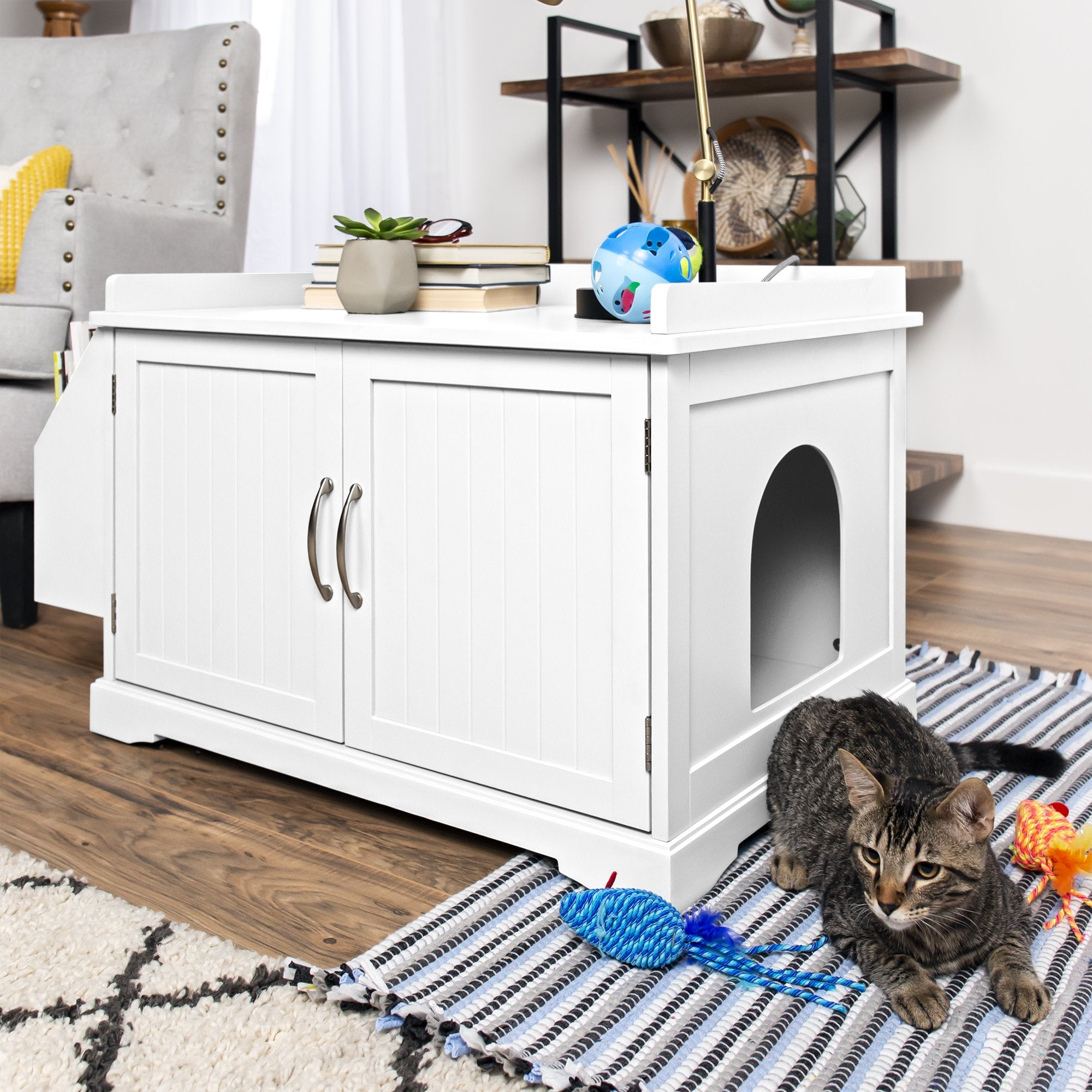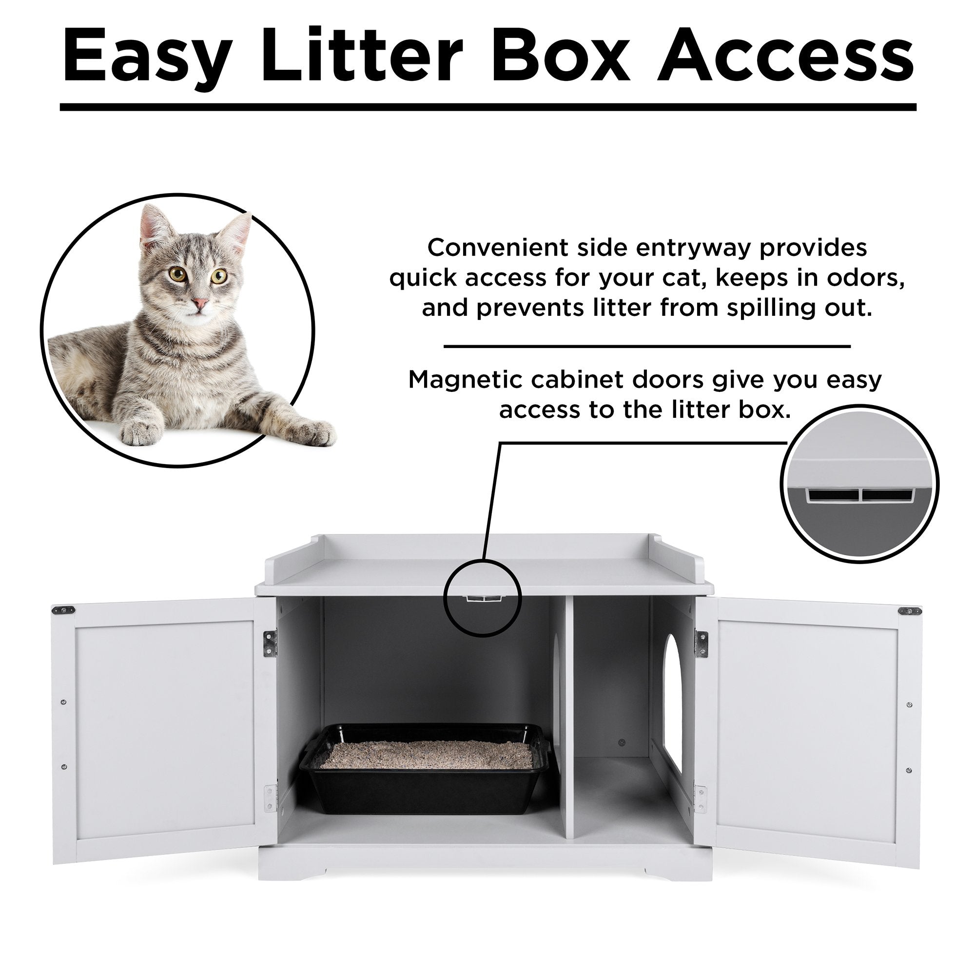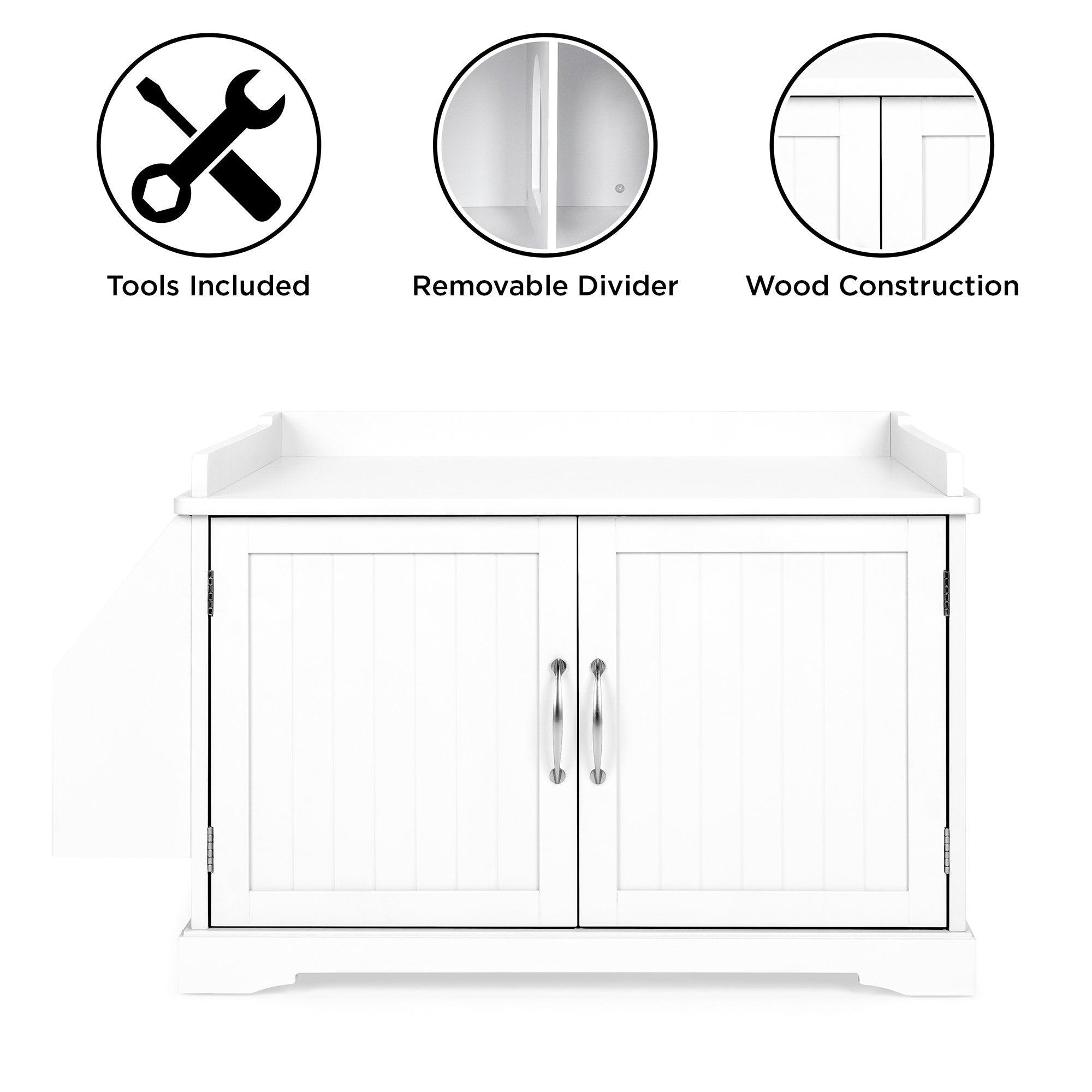 • HIDES YOUR LITTER BOX: Maintain a tasteful and tidy living space as this enclosure accommodates most litter box sizes and reduces the spread of offending odors; simply remove the divider to fit larger litter boxes