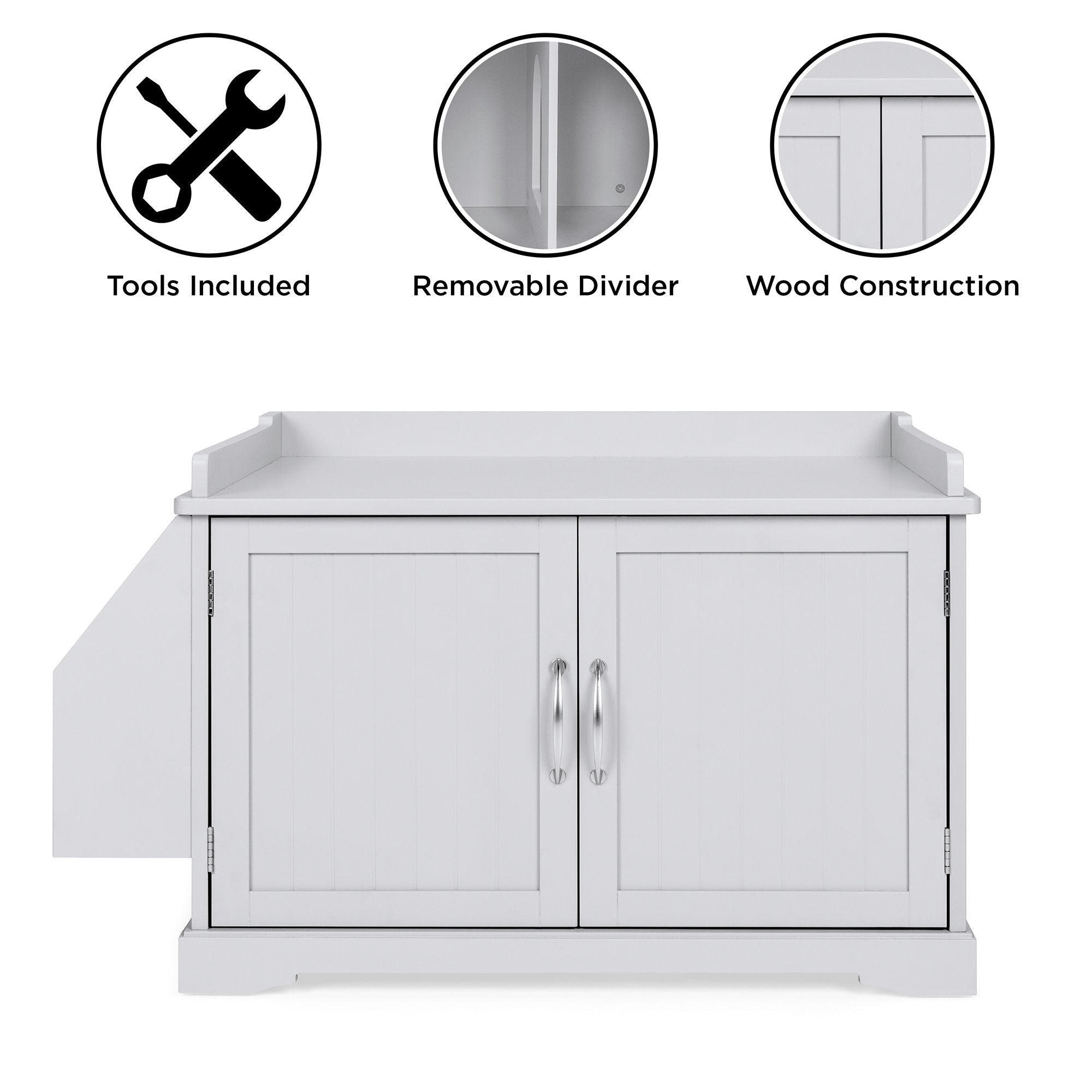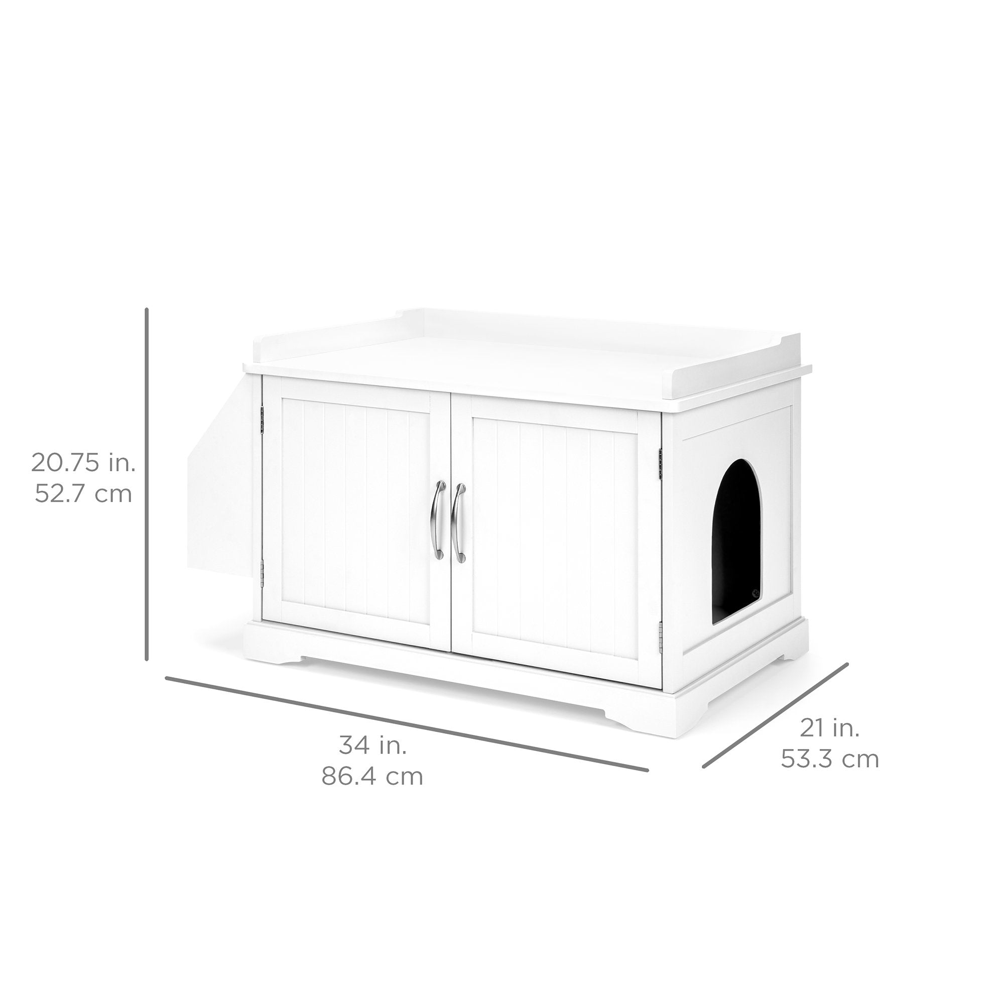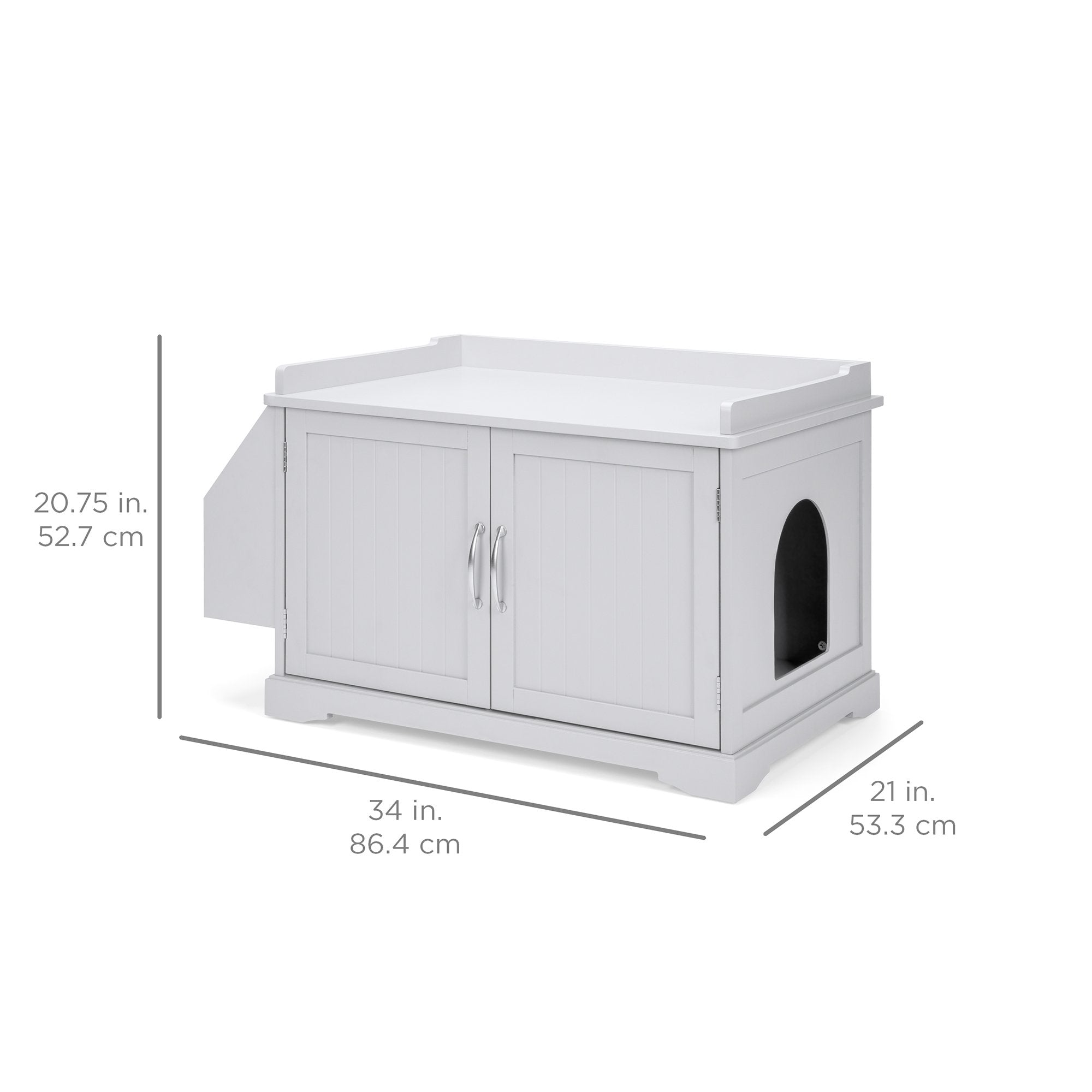 • HIDES YOUR LITTER BOX: Maintain a tasteful and tidy living space as this enclosure accommodates most litter box sizes and reduces the spread of offending odors; simply remove the divider to fit larger litter boxes