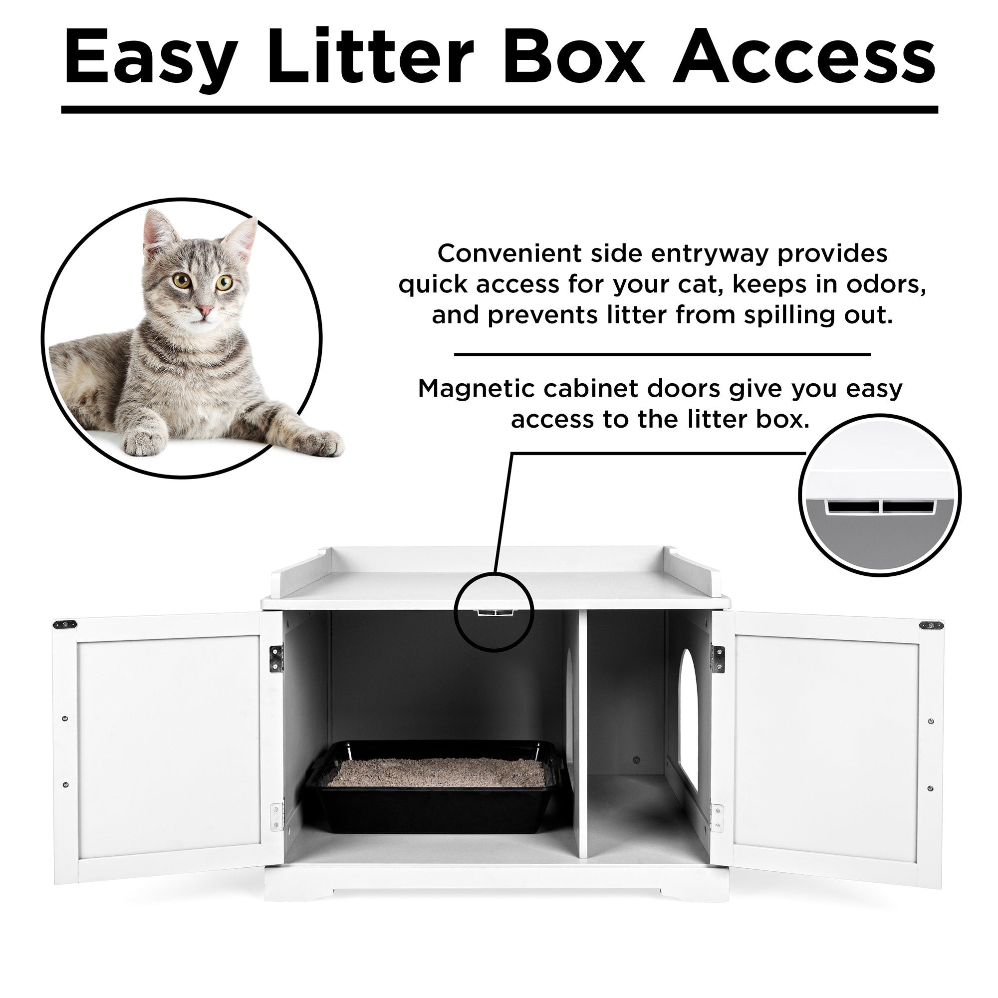 • STRAIGHTFORWARD SETUP AND EASY CLEANUP: Have this kitty enclosure assembled in about an hour with all the tools you need included. Take advantage of the magnetic cabinet doors for easy access to the litter box and quick cleanup
