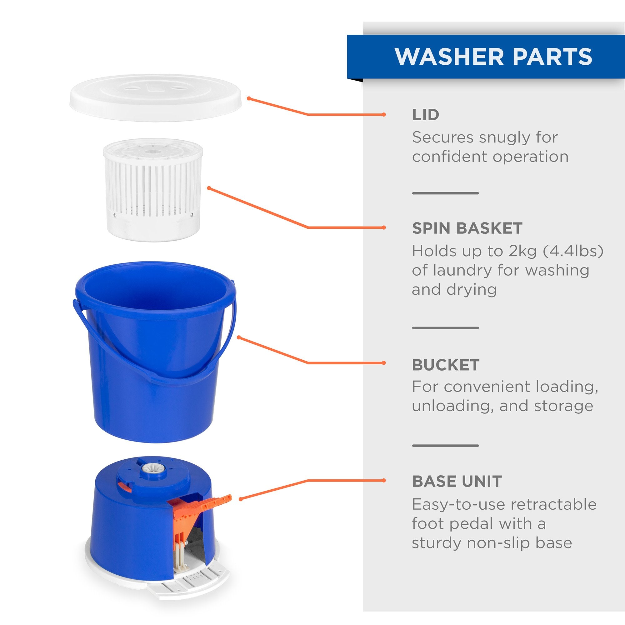 REQUIRES NO ELECTRICITY: Pump the foot pedal to easily initiate washing and drying cycles while being energy-efficient and reducing carbon emissions