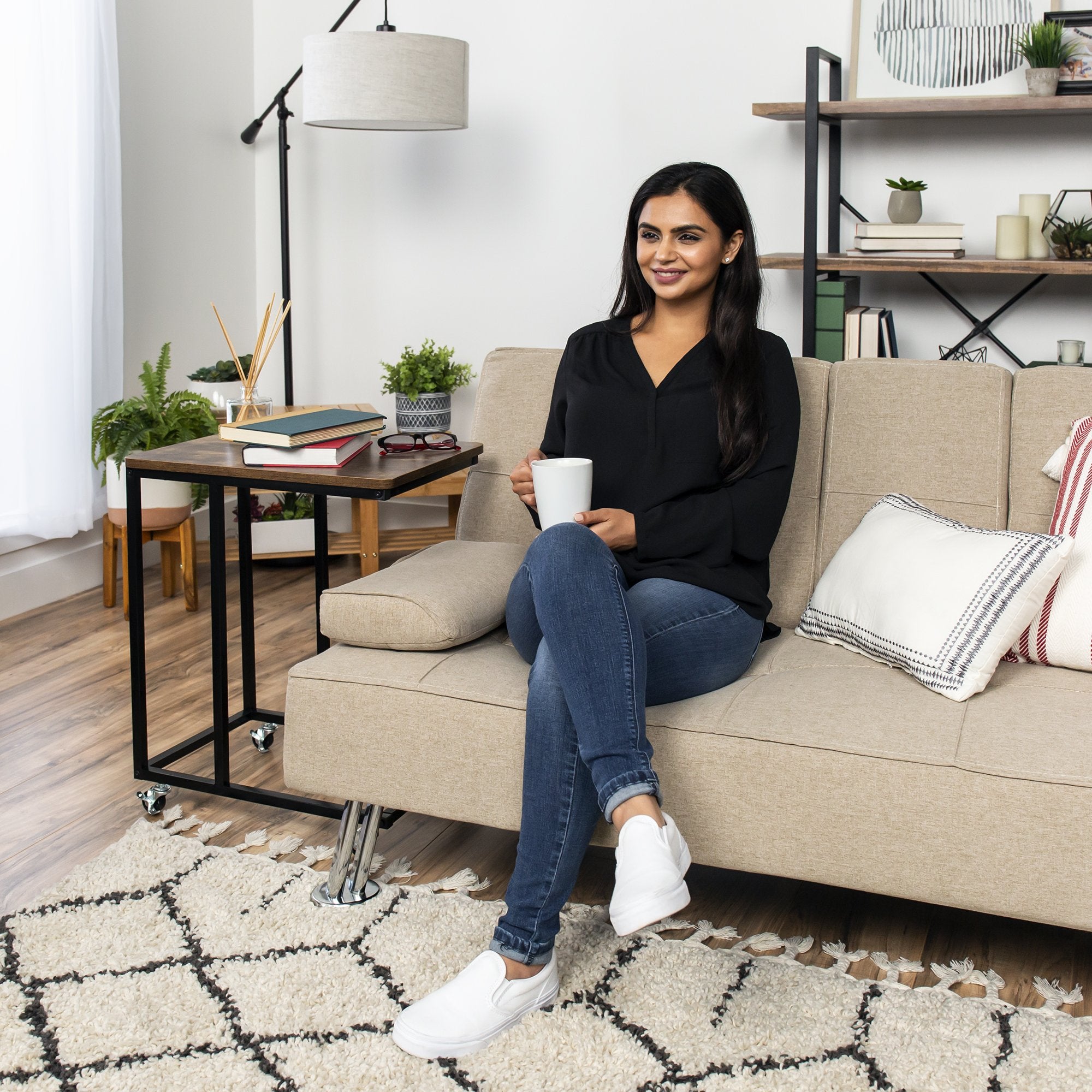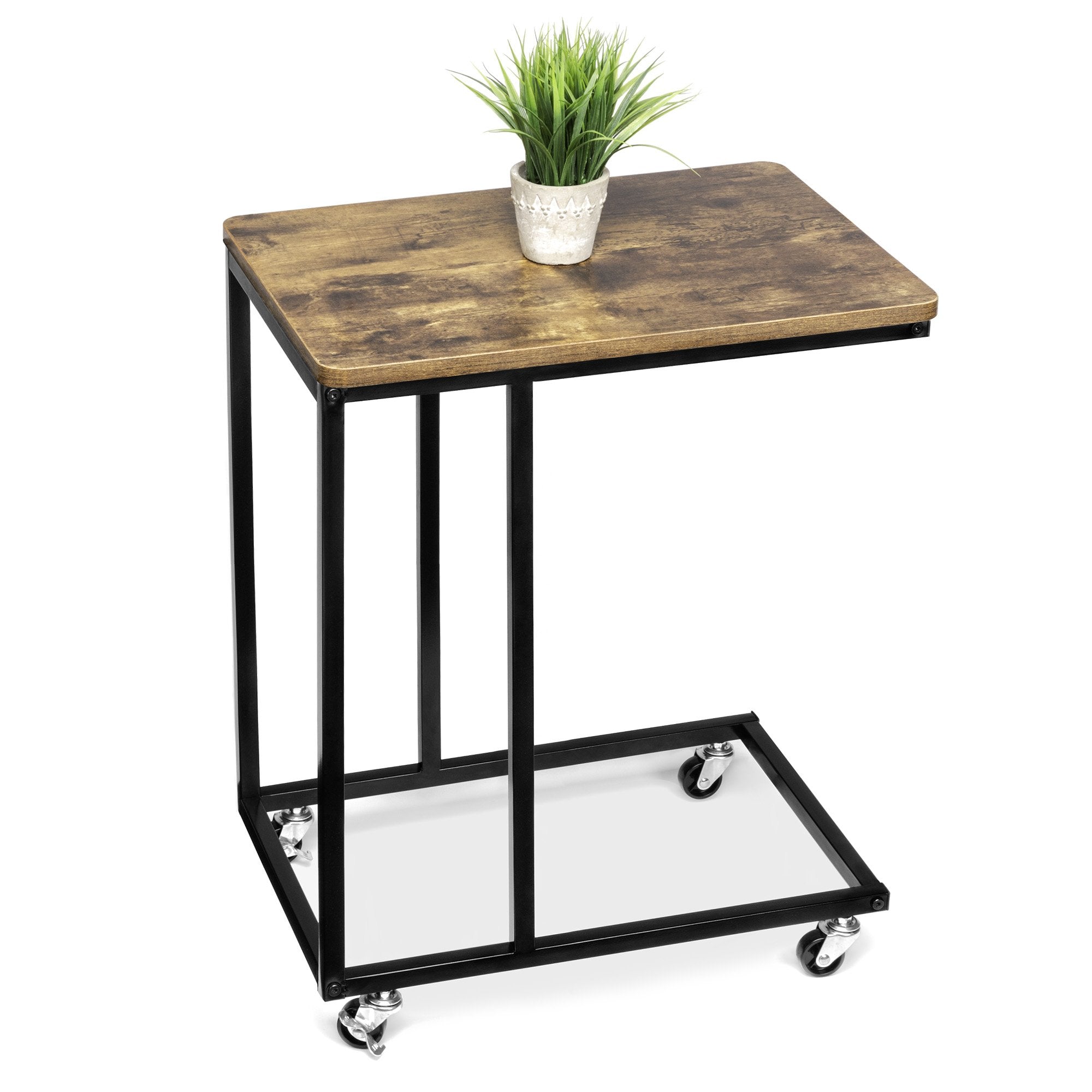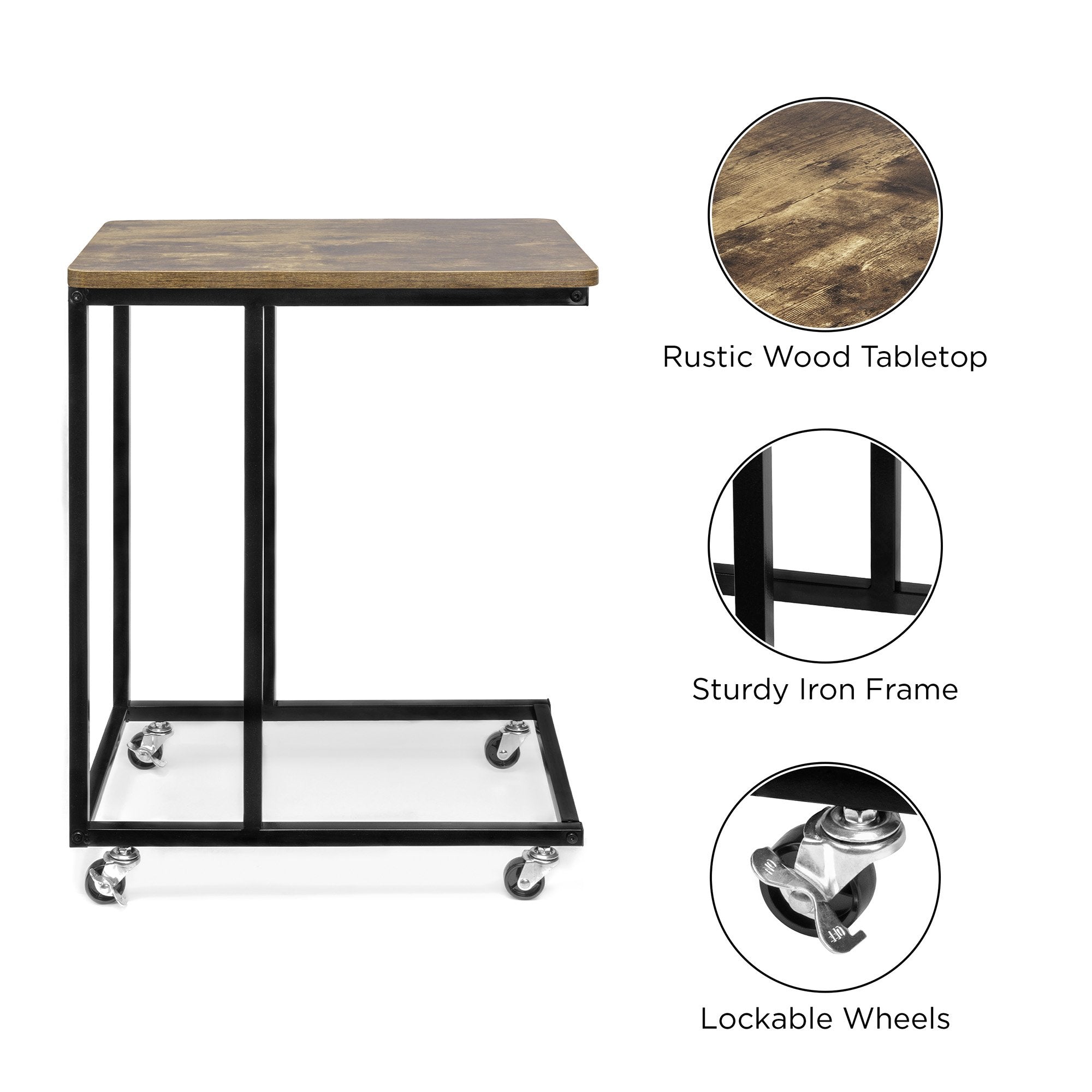 Rolling End Side C-Table for Laptop, Meals, Drinks, w/ Wheels