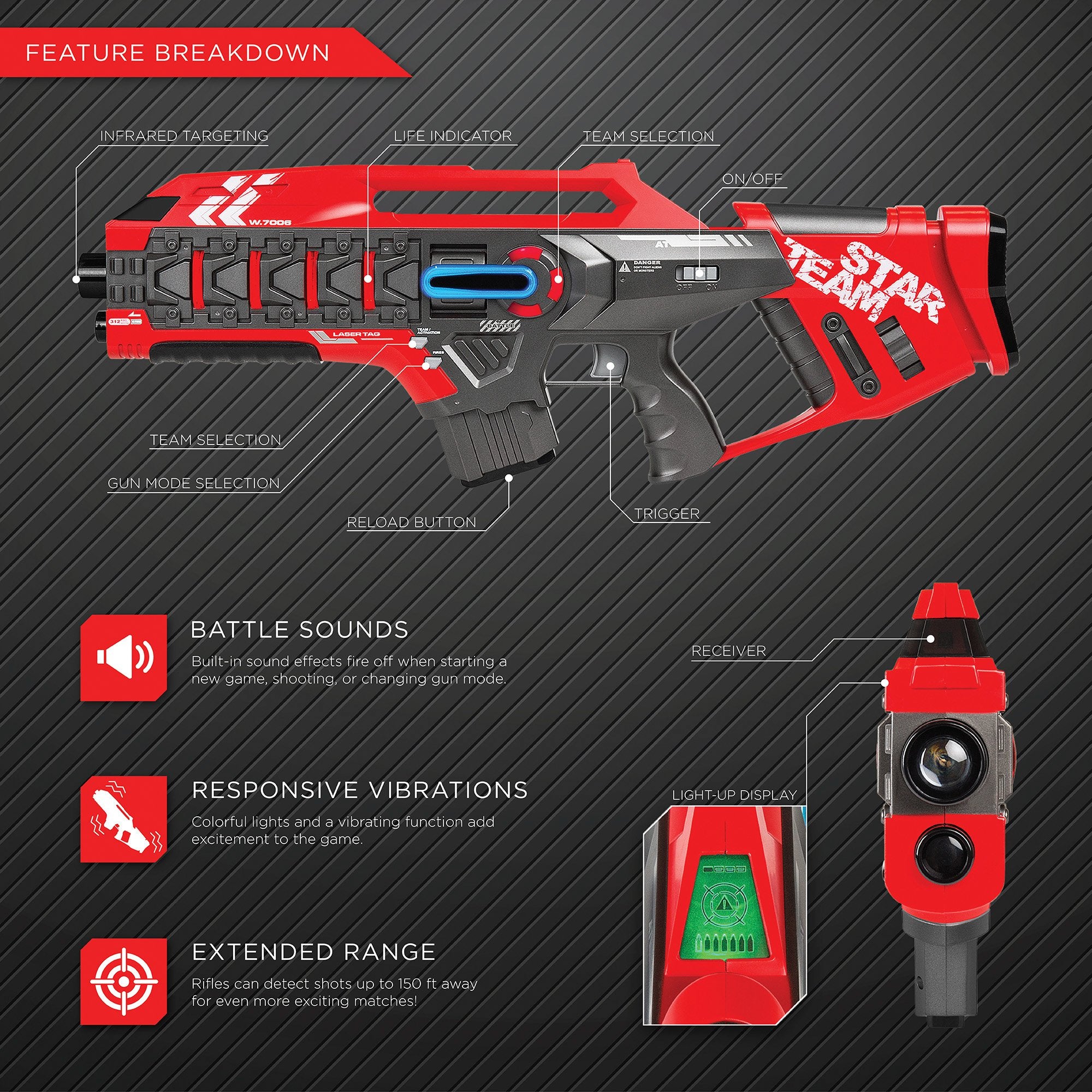 150FT SHOOTING RANGE: These infrared laser tag rifle blaster toys have an impressive 150-foot striking distance