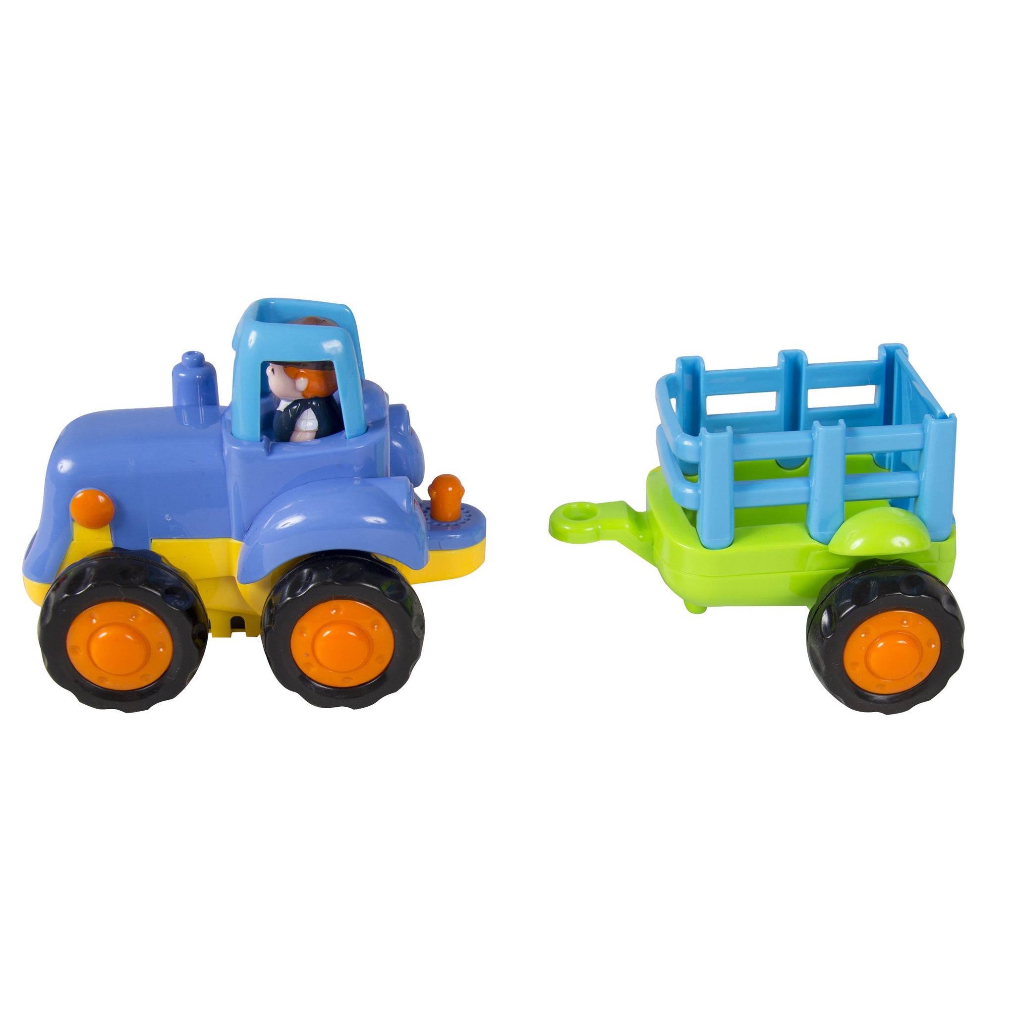 MOVING AND DETACHABLE PARTS: The tractor comes with a detachable trailer and the backs of the cement mixer and dump truck can move around!