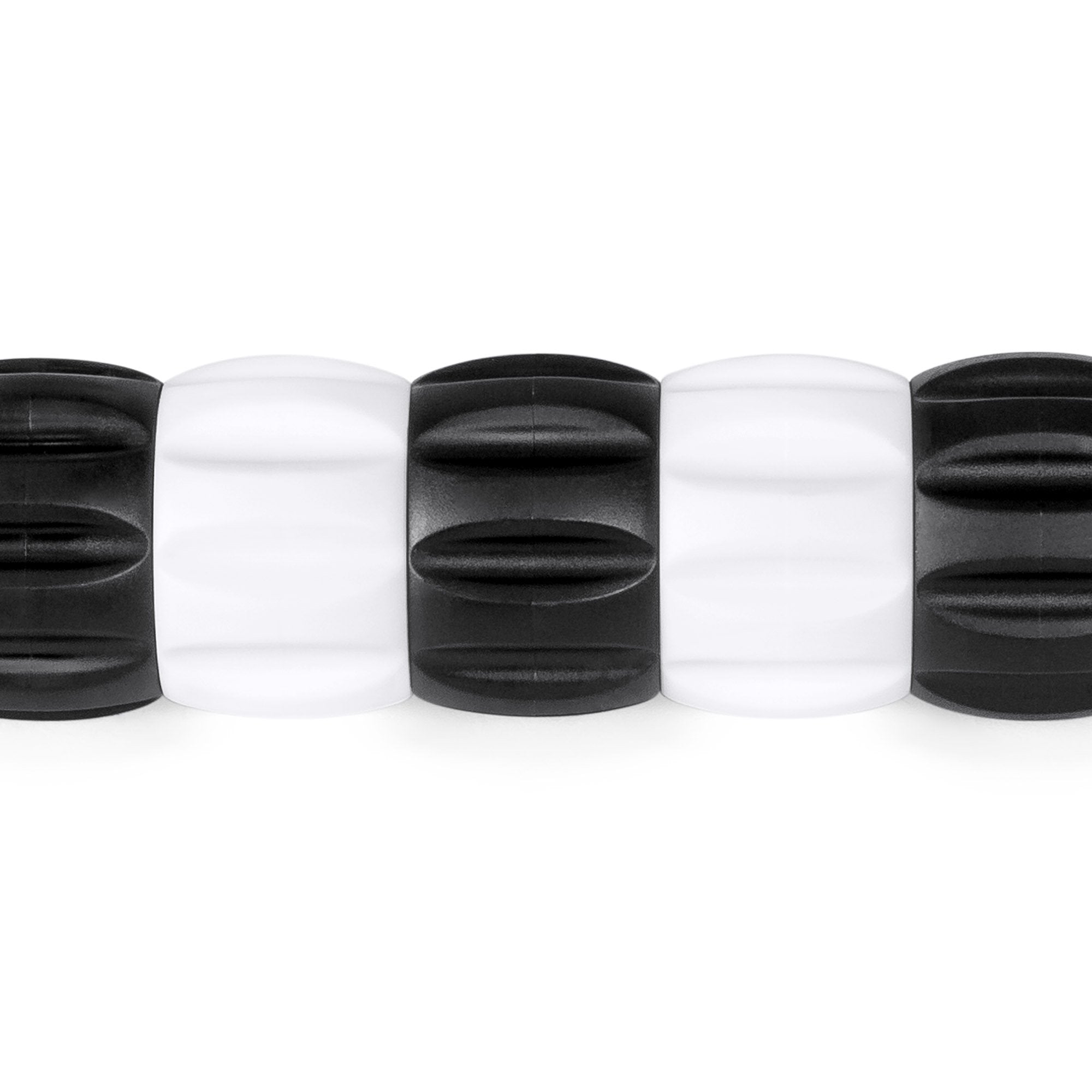 Efficient muscle relief using smooth rolling action with a 2mm gap between each roller and non-slip handles