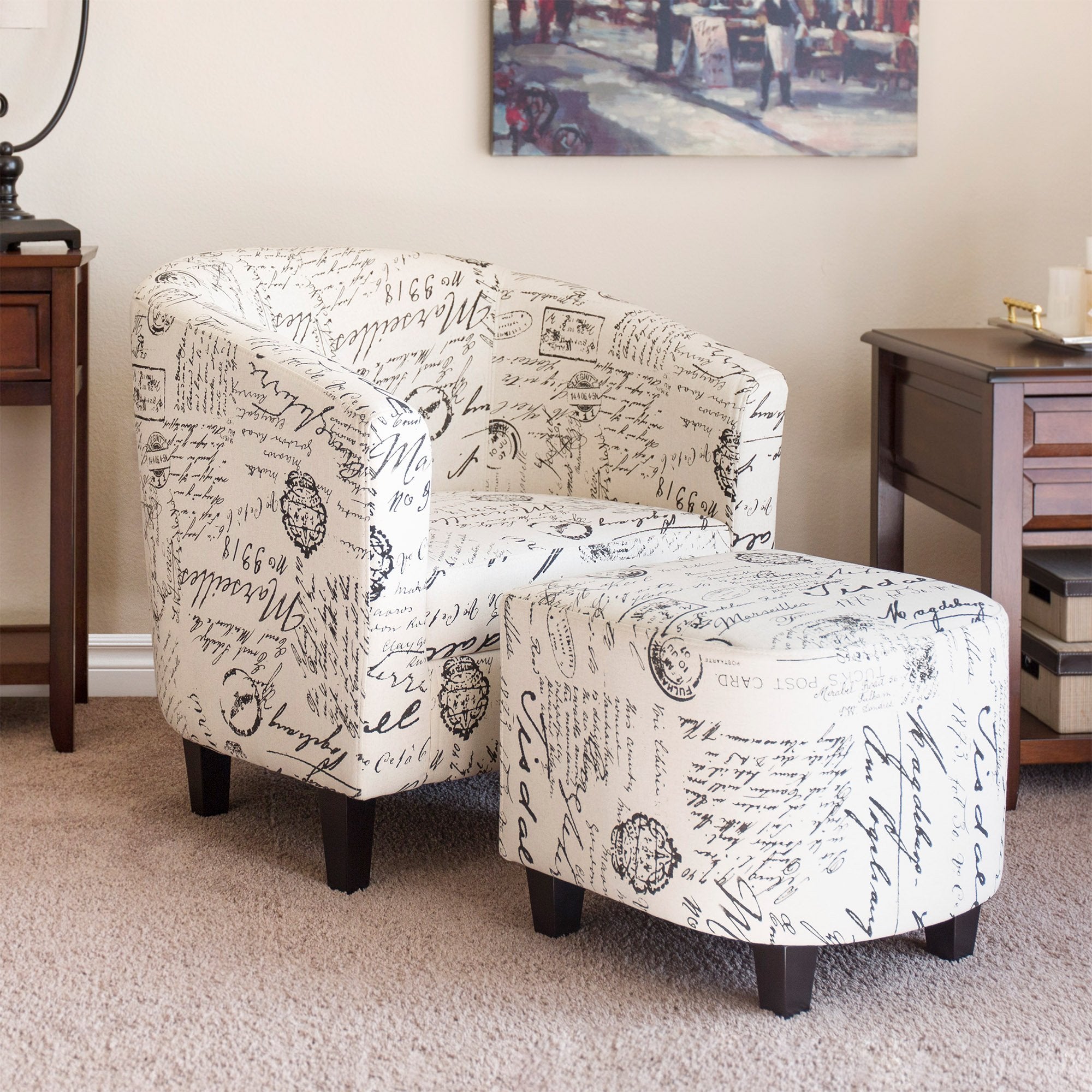 CAPTIVATING PATTERNS: Charming accent chair brings life to your living space with eye-catching details against a delicate upholstery; Script (White) or Floral (Blue)