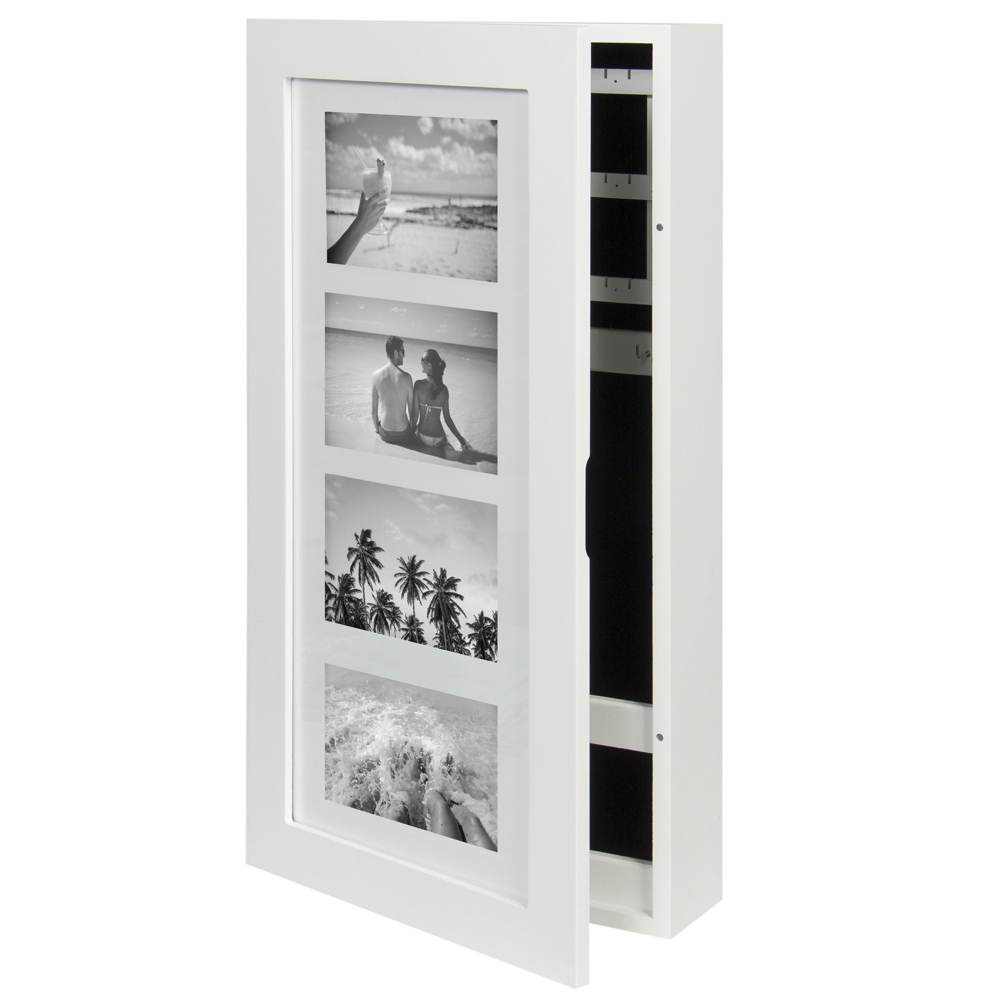Wall Mount Jewelry Armoire Cabinet w/ 4 Picture Frames